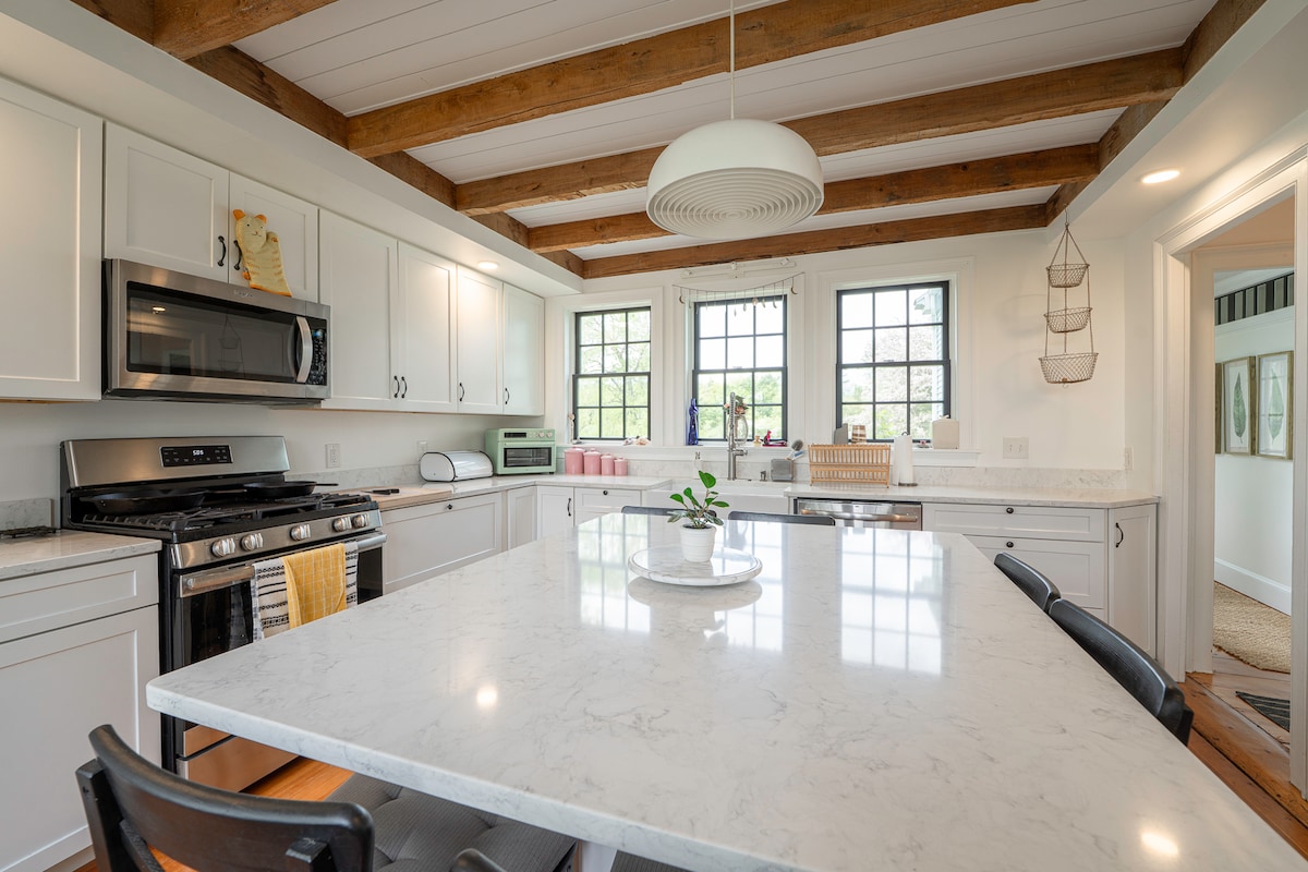 Apartament elegant, spațios, cu 1 dormitor, cu intrare separată. La etajul 2, 1 zbor în sus. Aer condiționat numai în dormitor. La 1,5 străzi de râul Kennebec, la o scurtă plimbare de centrul orașului Bath, piața fermierilor de sâmbătă și de restaurante... la 20 de minute de mers cu mașina de unele dintre cele mai uimitoare plaje din Maine. Doar 15 minute până la Brunswick, 20 de minute până la Freeport și 45 de minute până în centrul orașului Portland. O bază perfectă pentru vizite la colegiu (Bates și Bowdoin), pauze de călătorie peste noapte sau explorarea coastei de mijloc!