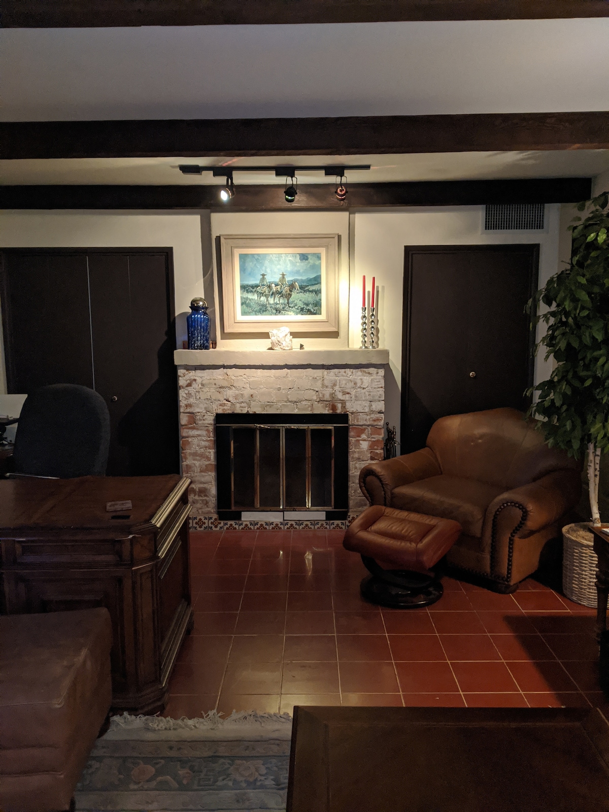 Bucură-te de acest apartament privat al soacrei, cu intrare separată fără cheie! Configurația este similară cu o cameră de hotel alăturată, unde împărțim o ușă interioară care are încuietori pe ambele părți ale ușii. Apartamentul tău include un șemineu clasic din cărămidă, un dormitor privat cu pat matrimonial. O baie privată. O chicinetă cu cafetieră Keurig și cafea, cuptor cu microunde și frigider mic. Spațiul are acoperire pentru ferestre pentru a permite un spațiu întunecat sau pentru a deschide ferestrele pentru a lăsa lumina naturală să intre.