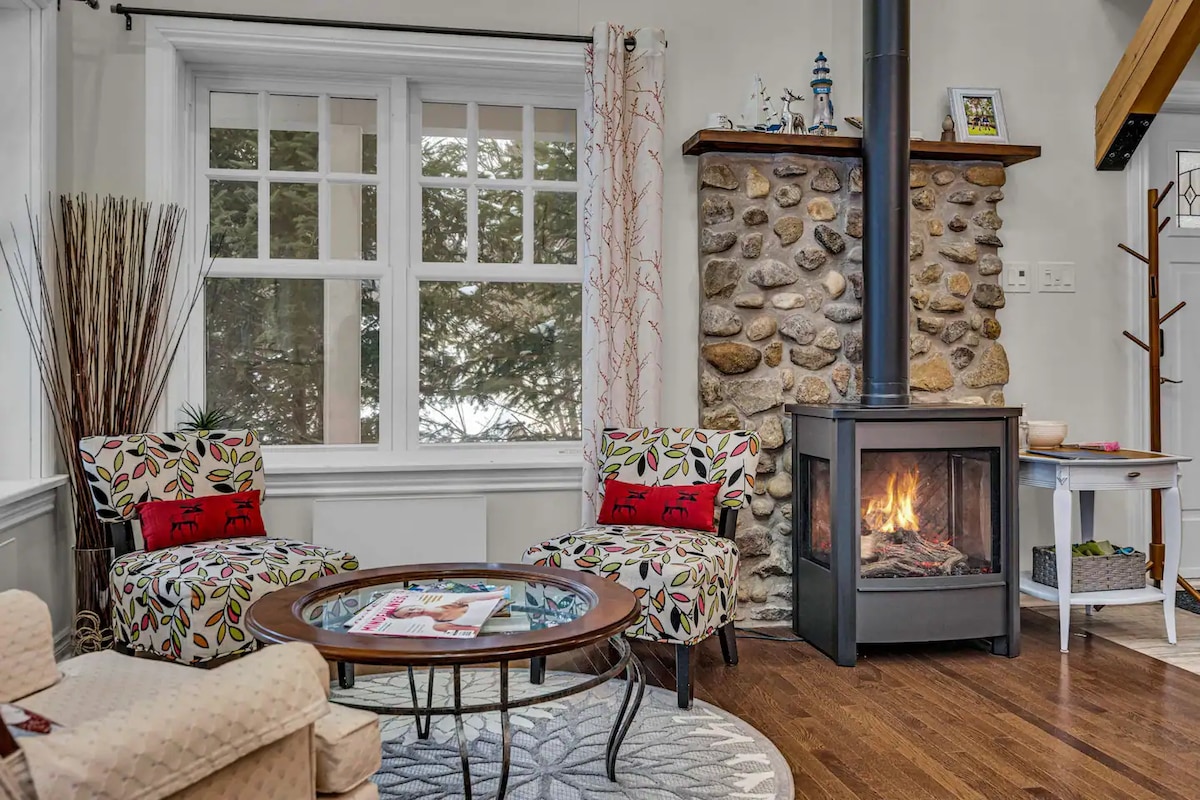 Rustic-Chic Retreat in Montebello Stay in the heart of Montebello, steps from the Fromagerie & marina, This cozy, zen-inspired retreat is perfect for couples or friends seeking comfort and adventure 🛌 Queen bed for 2 guests 🛁 Stylish, unique bathroom 🎥 75'' TV, Netflix, comfy sofa, and Wi-Fi 🚗 5 mins to Parc Omega Nearby Activities: Explore Château Montebello and its amenities Local shops, cafés, and restaurants Hiking ,biking ,golfing ,Parc Omega Papineau-Labelle Reserve and more