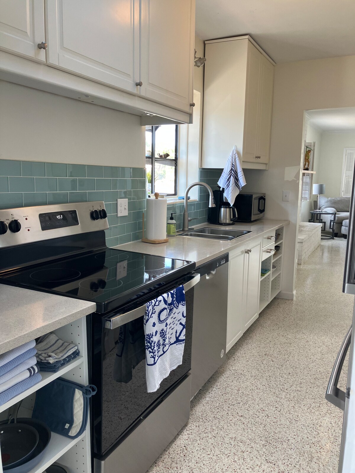 Apartament studio recent renovat, situat la câțiva pași de Lido Key Beach și St Armand 's Circle. Clădirea a fost vopsită în albastru în noiembrie 2023.