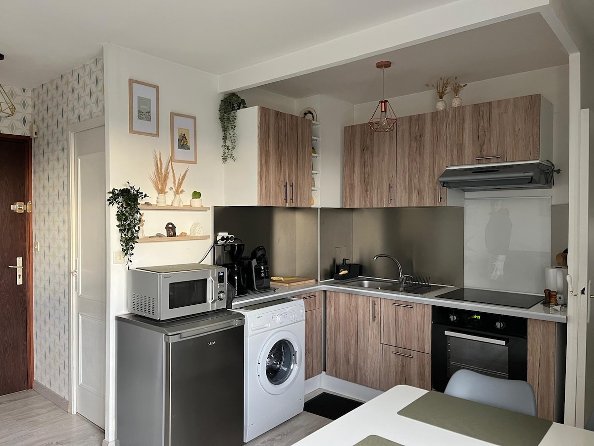 E un paradis al păcii. Între Courseulles și Ouistreham micul meu apartament de 25 m2 renovat vă oferă o adevărată liniște sufletească. Caracteristică mică: baia este îngustă, iar accesul la cadă poate fi dificil pentru persoanele cu dificultăți de mobilitate. Saint Aubin sur mer este un sat de familie unde este bine să trăiești. Mediul este foarte liniștit și accesul la mare este aproape (50 de metri). Și dacă îți place povestea, ai venit în locul potrivit.