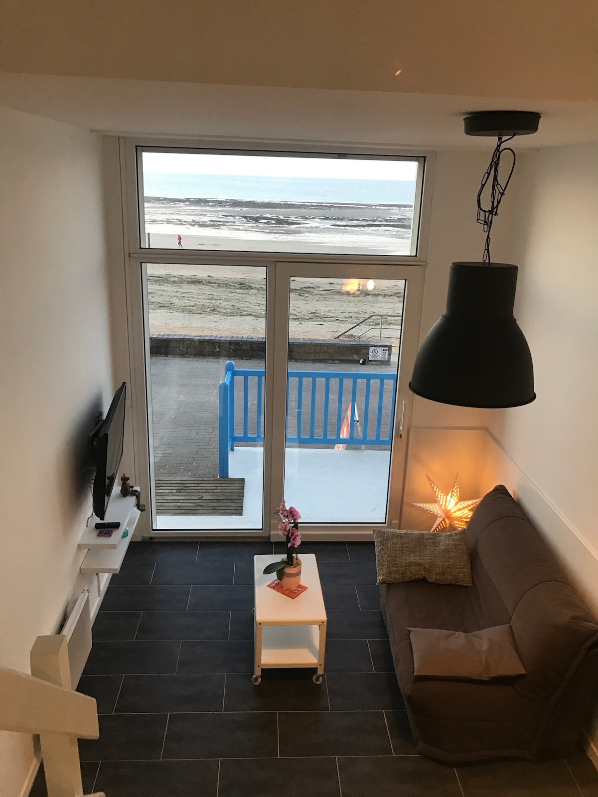 BALEINE BLEUE... Ochi în apă, 180° de valuri, plajă, zid de mare în Saint-Aubin-sur-Mer, o mică stațiune de pe litoral de pe Côte-de-Nacre. LBB a avut o renovare: ferestre, radiatoare, canapea, pat, saltea, duș, lenjerie de uz casnic, totul este nou, pentru a te relaxa, a sărbători DDAY, a vizita plajele de aterizare și hinterlandul, a practica sporturi nautice, a juca pe nisip, a asculta pescărușii. La BALEINE BLEUE este refugiul visătorului și al aventurierului.