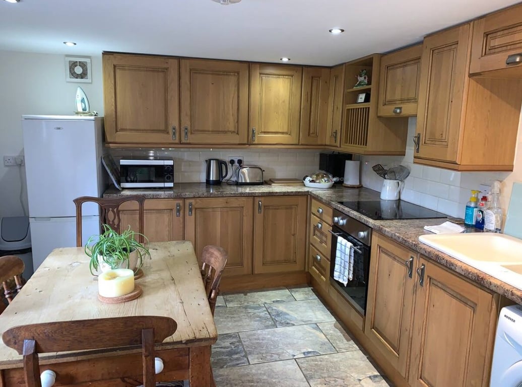A self contained bungalow comprising of a bathroom with a bath and a shower, a living room, a fully equipped kitchen diner including a washing machine, iron with ironing board, an electric cooker, microwave and a fridge freezer. A spacious bedroom with a double bed and a suitable laptop work space / dressing table with a hairdryer. The bungalow is well situated on the grounds of our main house and has off road parking is available.