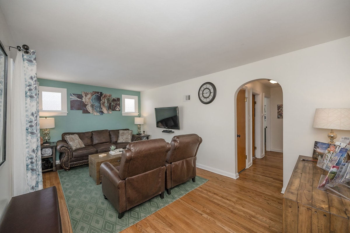 Proprietatea noastră este locul perfect pentru oricine caută o ședere liniștită în STL! Această casă 4BR, 2,5 BA primește lumină naturală uimitoare pe tot parcursul zilei și este aproape prea confortabilă! Situată la 12 minute de aeroport și aproape de multe dintre atracțiile de top ale STL, locuința noastră te va face să te simți revigorat după ședere! Suntem o familie care este dedicată să se asigure că oaspeții noștri se bucură de cea mai bună experiență posibilă. În calitate de gazde locale, te poți odihni liniștit știind că suntem la doar un apel telefonic distanță!