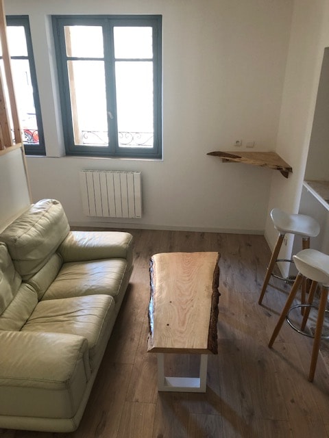 Apartamentul are o curte interioară la parterul unei clădiri mici, foarte liniștite, acest mic pied-à-terre, vă va încânta cu mobilierul său de calitate. Masa de mahon și scaunele sale galbene de fier îți vor promite un moment bun la masă . Lenjeria de pat este la 160 cm de Mérinos pentru a asigura un confort mai bun. Bucătăria este dotată cu o cafetieră Senseo cu păstăi, un prăjitor de pâine, un ceainic... Sunt puse la dispoziție așternuturi de pat și prosoape.
