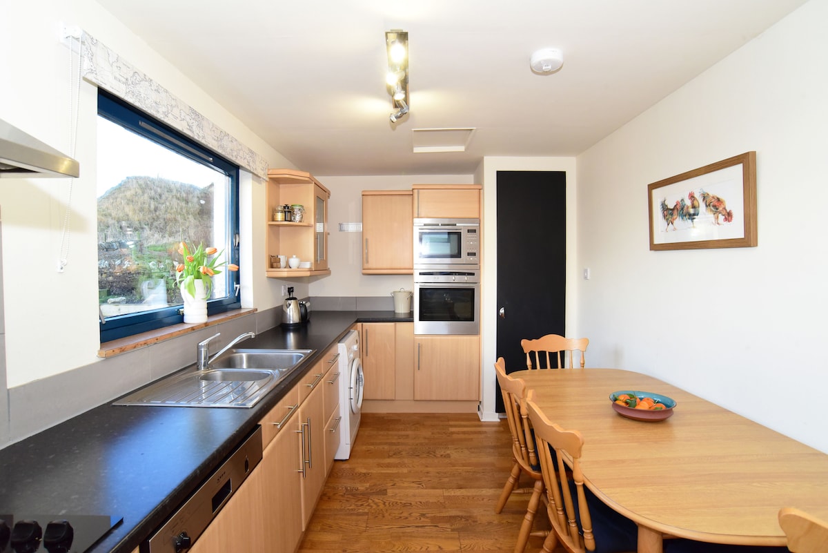 O casă spațioasă de dormit 6 (1 dublu, 2 gemeni) situată într-o grădină mare închisă, cu vedere spectaculoasă la mare. În satul de coastă St Cyrus, la 5 minute de mers pe jos de pub, magazin sau pe poteca stâncoasă până la nisipurile aurii și dunele înflorite din Rezervația Naturală Națională Sf. Cyrus. O mulțime de spațiu pentru a-ți face propria locuință; să faci un ospăț sau să te relaxezi lângă aragaz în bucătăria mare, să observi delfini din seră sau să privești cum luna răsare din mare după un grătar. Grădină închisă, ideală pentru familii și câini.
