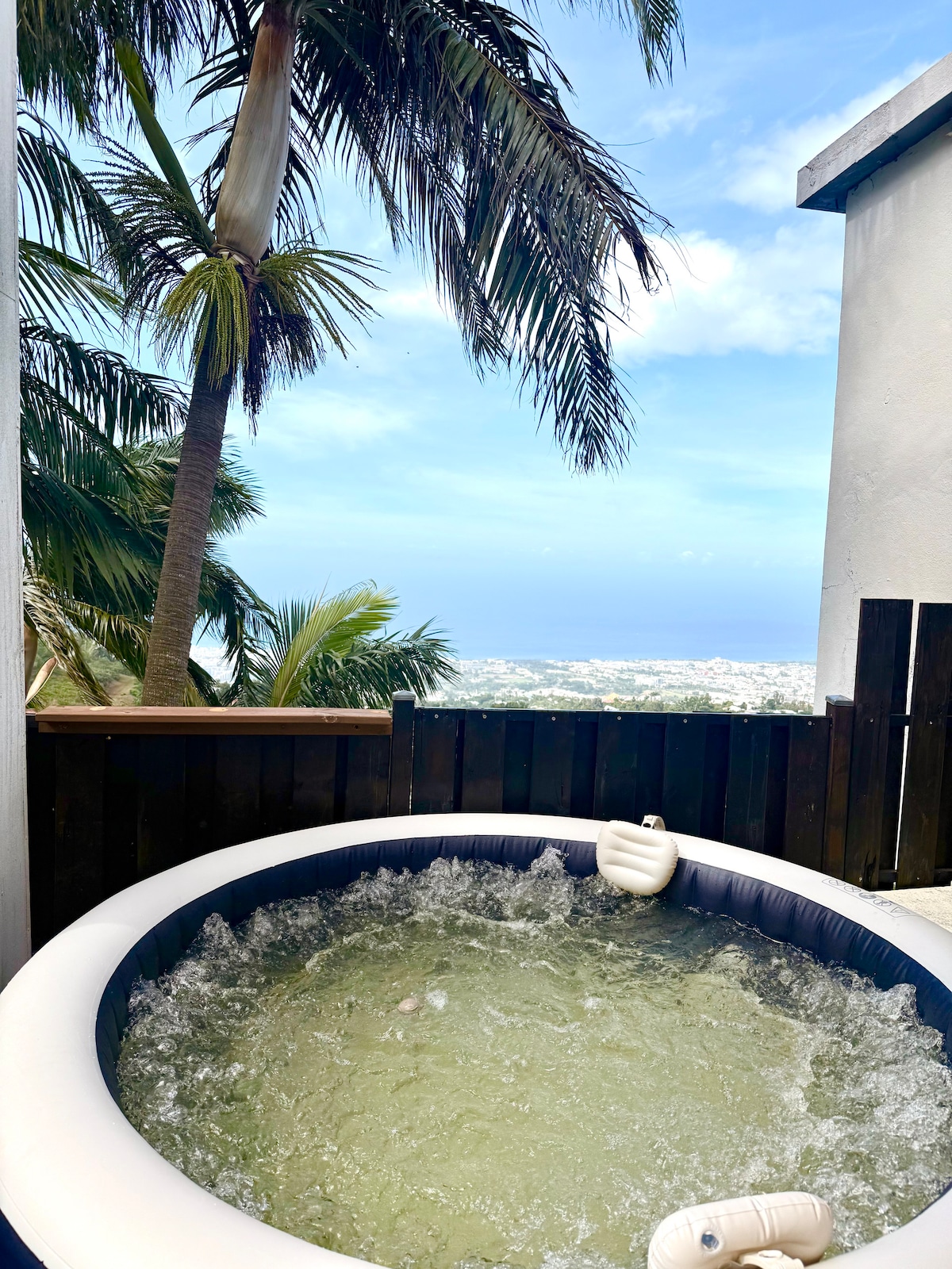 Bine ai venit la Oasis des Hauts - escapada ta la munte! La doar 15 minute de centrul orașului Saint-Denis, acest loc liniștit și elegant te invită să te relaxezi. Nestemata Oazei? O cadă cu hidromasaj frumoasă în aer liber, perfectă pentru seri relaxante sub cerul înstelat. Bucură-te de confort modern: bucătărie echipată, aer condiționat, internet de mare viteză și mașină de spălat rufe. Urmează traseul din spatele proprietății și descoperă o priveliște uluitoare asupra Saint-Denis și a împrejurimilor sale!