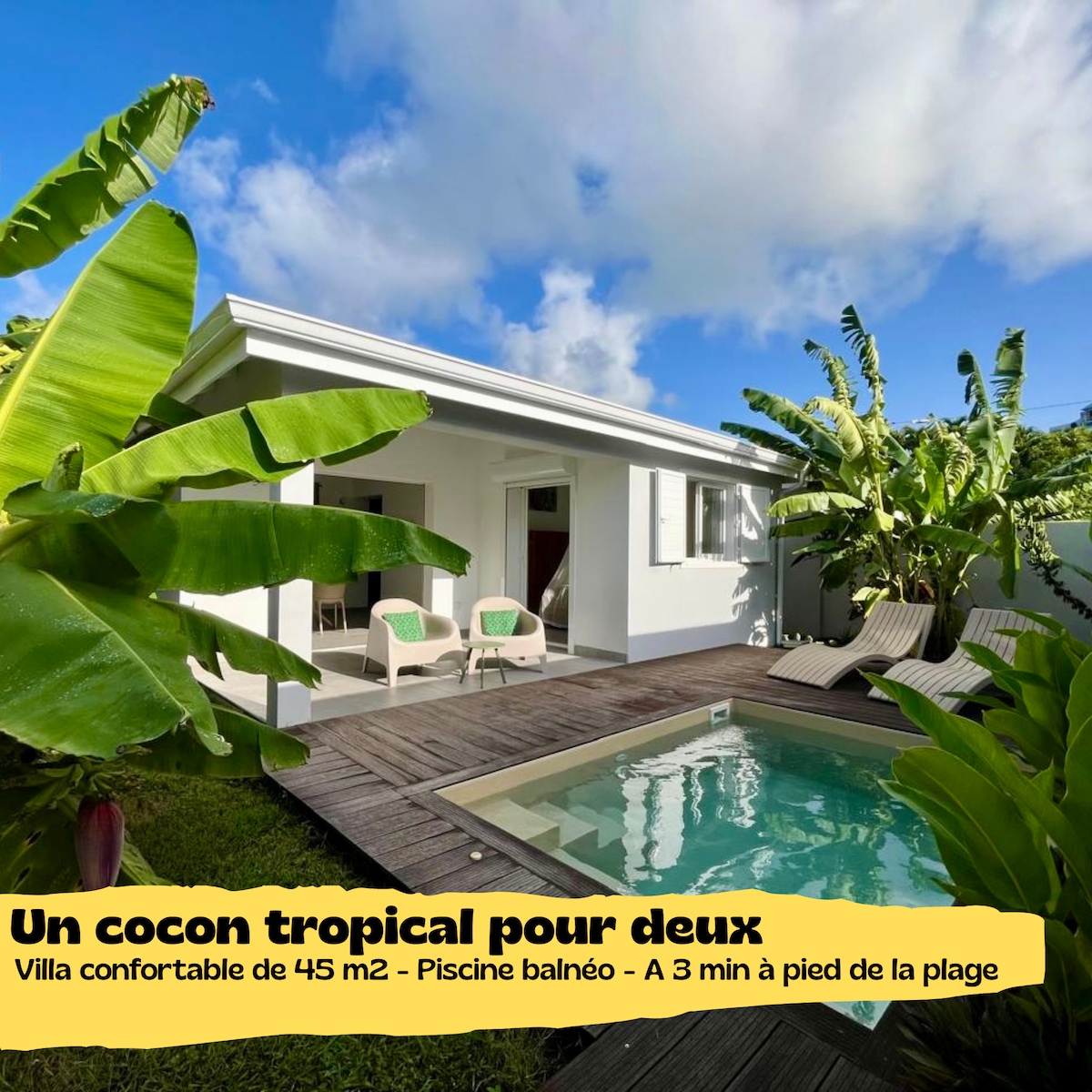 Vila La Petite are 2 dormitoare cu aer condiționat, fiecare cu baie proprie. Te vei distra de minune în piscina de 3x5 m, terasa acoperită îți permite să iei masa în aer liber. Decorul este curat, iar mobilierul a fost ales în mod specific de către proprietari. Plaja Gros Sable și poteca de coastă sunt la 450 m de mers pe jos. Rezervorul de apă de 1200 l este prezent pentru a compensa eventualele întreruperi de apă. Wi-Fi gratuit. Parcare ușoară în interior.
