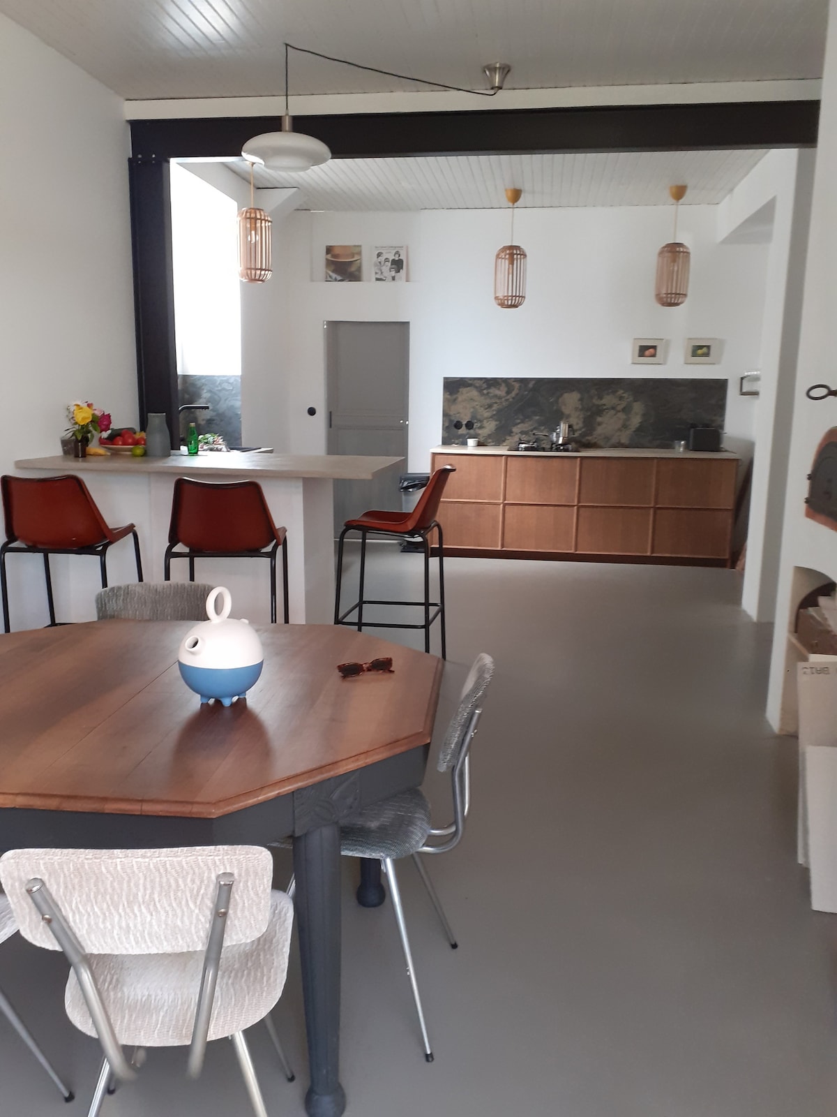 Bienvenue à la maison de Julie ! Un séjour ressourcement en bord de mer, accessible en train (1h de Nantes) et sans nécessité de voiture sur place, pour encore mieux déconnecter… Nous vous accueillons au rez de chaussée d'une demeure de caractère du 17ème siècle, située à 10mn à pied de tout : l'océan, les marchés, les commerces, les restaurants et terrasses… Pierres, bois, matières naturelles et couleurs choisies vous accompagneront pour un décor cocooning à souhait.