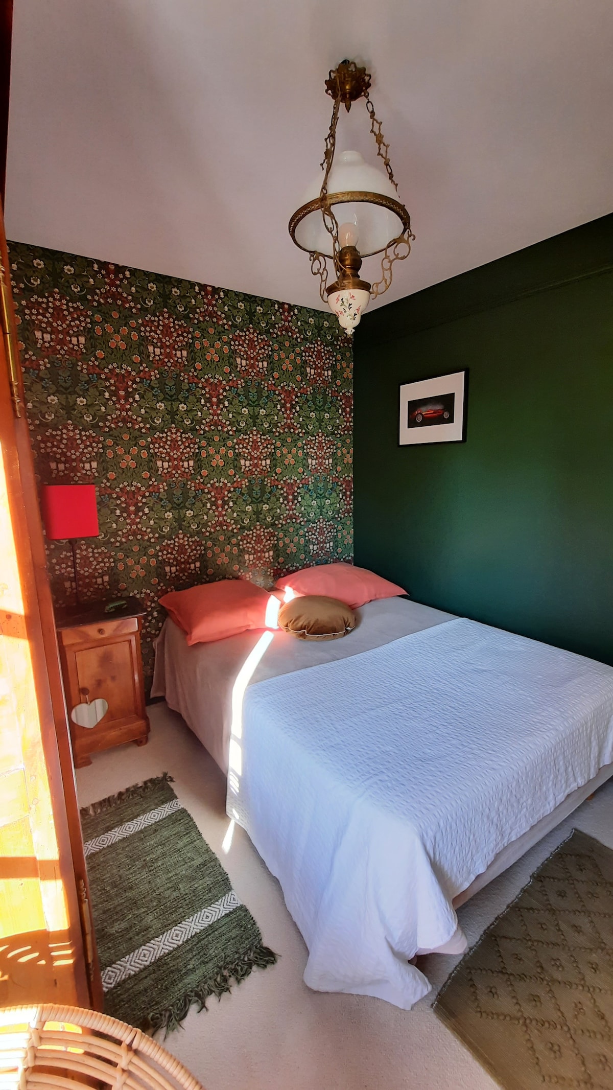 Vous apprécierez votre séjour dans ce logement plein de gaité, esprit bohême. SDB privative. Parking gratuit. Chambre à l'étage. Ouest. Rue tranquille. 2mn de la forêt , 5 mn hôpital Laënnec, 10 mn Zenith, 20 mn aéroport, 20 mn centre Nantes, 45 mn mer, 2 mn périphérique. Bus 89. Lit 140. Sur demande lit parapluie. Linge de maison et serviettes fournis. Café, thé, bouilloire ds la chambre. Accès micro ondes dans notre cuisine
