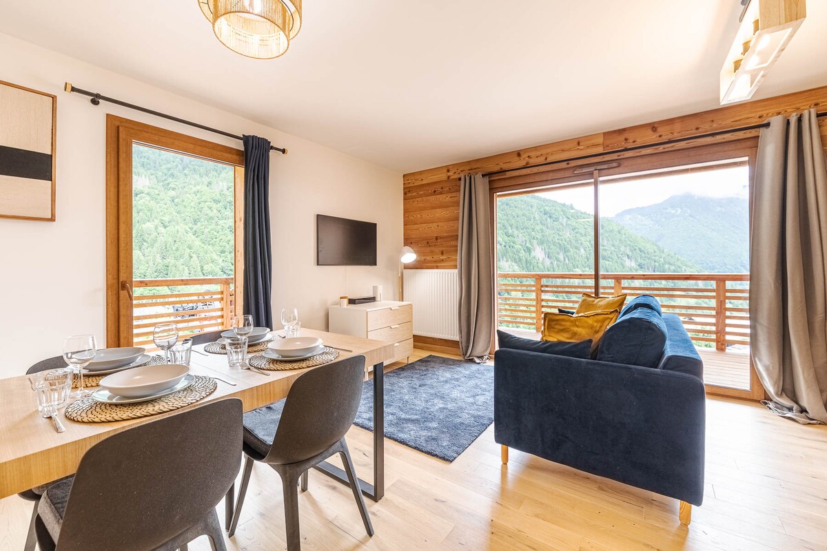Nou-nouț pentru iulie 2025! O fermă semi-detașată frumos renovată, cu stil artizanal. Cuprinde 3 dormitoare, 2 băi și spațiu pentru până la 7 oaspeți. Un amestec calmant de tâmplărie manuală și design modern. Acesta are o zonă de living/bucătărie în plan deschis, care se deschide spre balconul cu vedere la vale și la muntele Nyon. Mezaninul velux încadrează remarcabila Tête de l 'Éléphant. Garaje pentru parcare, depozitare, spălătorie și uscarea echipamentelor de schi. În apropiere este o parcare suplimentară.