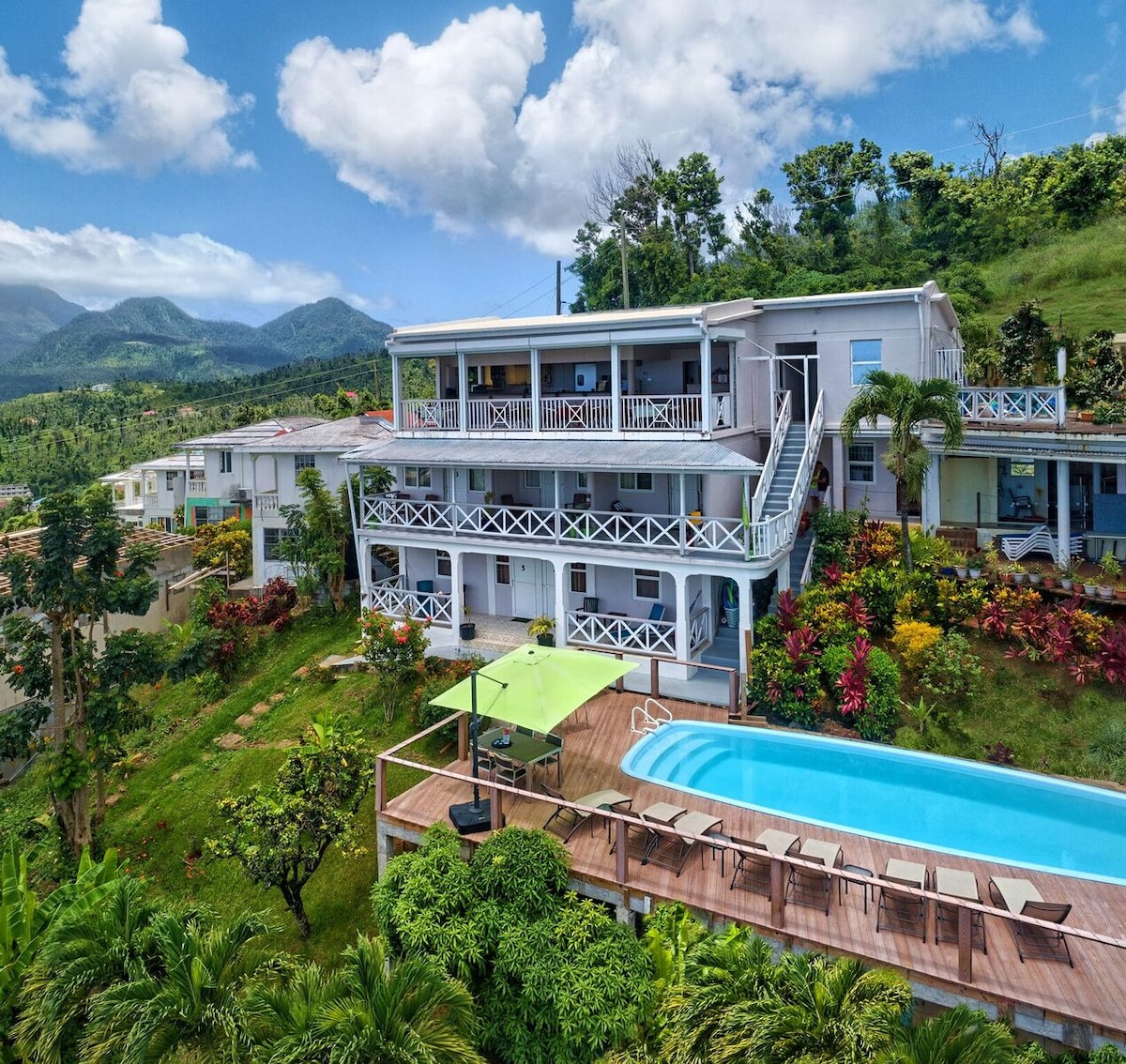 Această vilă modernă elegantă este perfectă pentru ca grupul să se bucure de frumusețea naturală a Dominica. Cu priveliști fabuloase atât la Marea Caraibelor, cât și la Oceanul Atlantic, ești cocoțat la marginea pădurii tropicale nordice. La aproximativ 30 de minute de Aeroportul Douglas Charles
