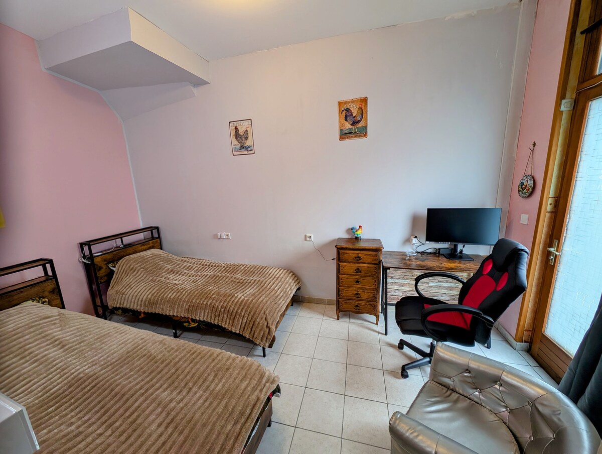 Îți sugerăm să stai în casa noastră, care este situată în Achicourt, lângă cetatea Arras (la 5 minute cu mașina de gară și la 20 de minute de mers pe jos de centrul orașului). Te vei bucura de locația liniștită la câteva minute de oraș. Parcare gratuită. Brutărie, măcelărie, presă de tutun și magazin de cartier în apropiere. casă pe 2 etaje, cuprinzând 3 dormitoare mari, 1 baie, 2 toalete, 1 terasă mobilată și 1 grădină. Casă foarte prietenoasă, ideală pentru familie sau grupuri de prieteni.
