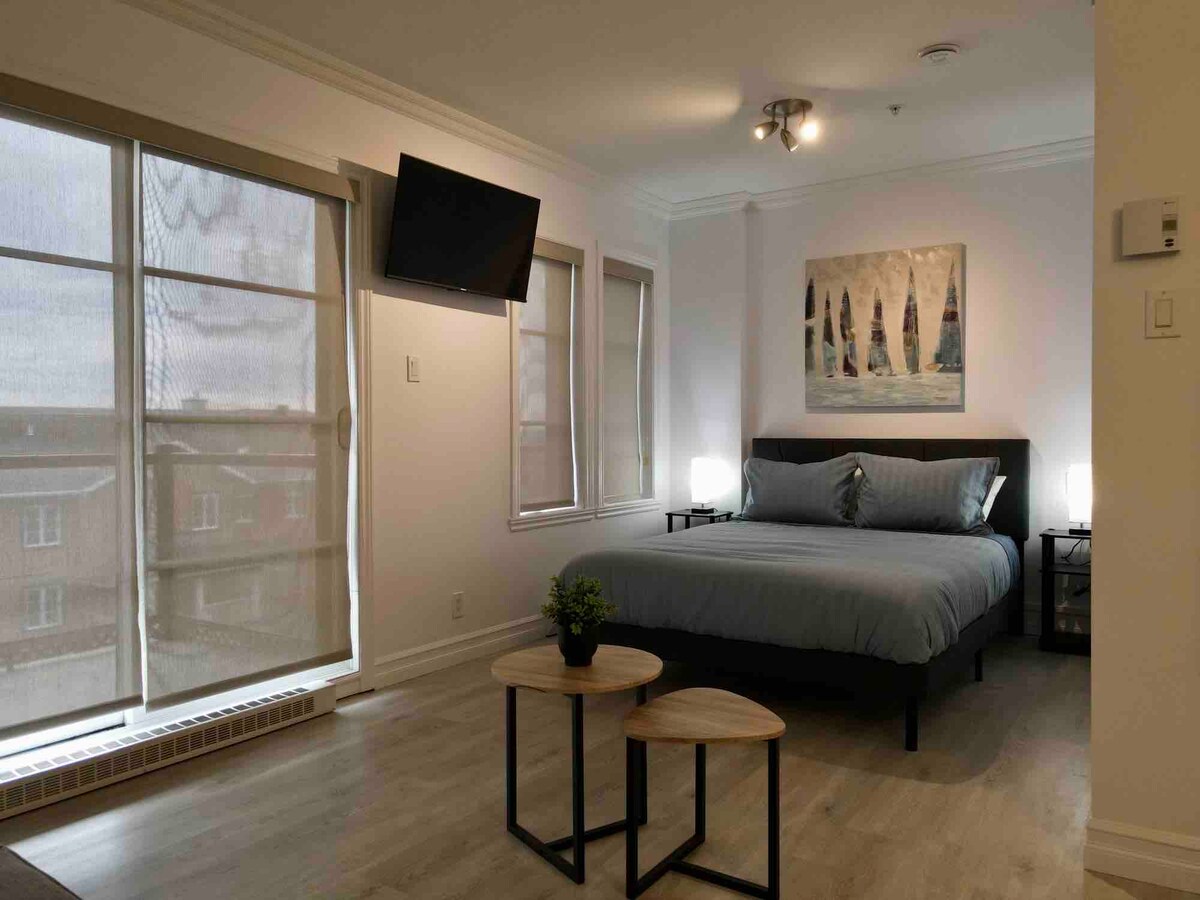 Quiet quiet chic loft Safe neighborhood Free parking Private area equipped kitchen Petit gem of quality is looking for 2 distinguished travelers to live a memorable experience. Close to Momorency Falls, Île d'Orléans and Old QC. Perfect choice close to town & attractions. Quiet, soundproofed, comfortable place, feel like home and as comfortable as in a hotel. Gym Locker Wifi Portable air conditioner Smart TV with premium Massage therapy *Taxes inc