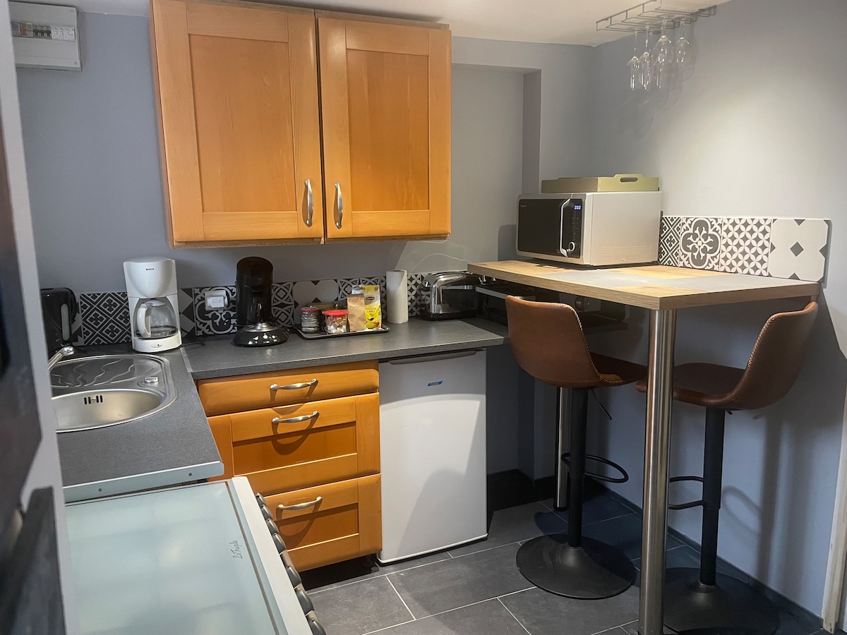 În inima orașului Saint-Malo, într-o zonă liniștită, aproape de plaje, precum și de magazine și intra muros GARSONIERĂ mobilată cu terasă, intrare separată de casa principală. mic dejun, lenjerie de pat disponibilă și lenjerie de pat inclusă, pătuț de călătorie. Parcare și mașină gratuită pe stradă 2 minute de magazine pe jos, 3 minute de plaja Hoguette și alte plaje accesibile cu bicicleta. Autobuz 100 m care servește (Saint Malo, Cancale, Mont Saint Michel Dinard Rennes)