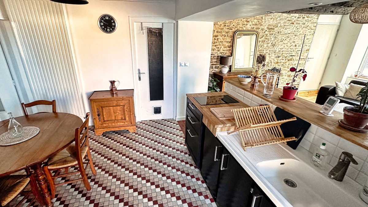 Locuință premium cu Balnéo și saună – Bruz, lângă Rennes Răsfață-te cu o pauză relaxantă în această frumoasă casă contemporană de 60 m² pentru două persoane Toate facilitățile: • Bucătărie modernă complet utilată, complet utilată • Suită cu pat matrimonial (180x200), lenjerie de pat premium • Baie cu balneo, saună și duș • Două televizoare conectate • Intrare cu dulap • Terasă și grădină Toate lenjeriile de uz casnic sunt furnizate (prosoape, halate etc.)