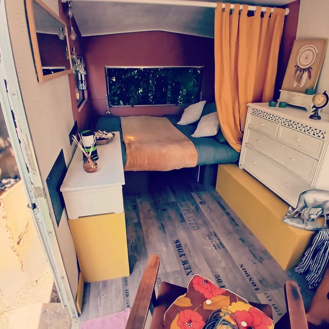 Rulotă boemă mică la marginea lemnului, la capătul viței noastre de vie. Vei găsi calmul Dordogne, o adevărată felie de paradis. Încălzire , iluminat solar, lămpi solare, toalete uscate, zonă mică de duș cu sac solar, grătar, aragaz, frigider în aer liber disponibil, fără apă curentă, dar ne îmblânzim de îndată ce este necesar, revenind la rădăcini și natură. Aproape de Sarlat și de valea castelelor, unde vom fi încântați să vă urăm bun venit.