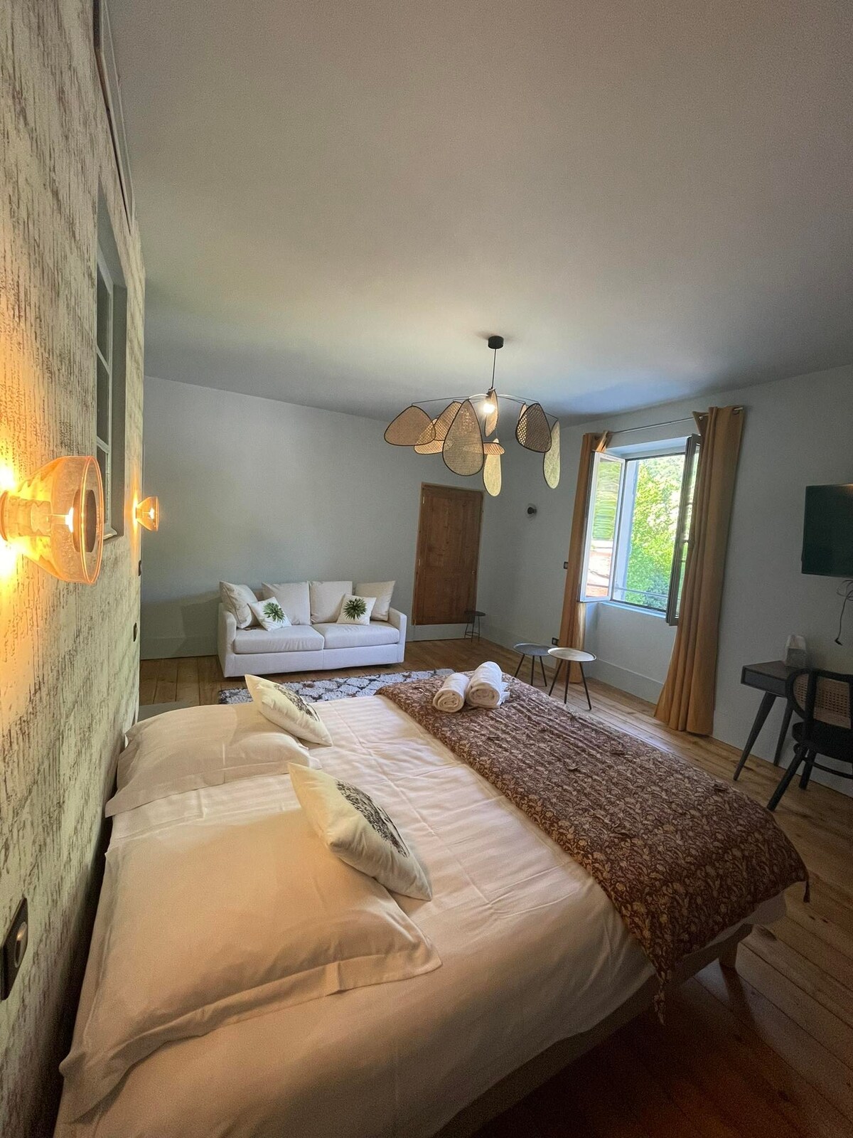 Cauți calm și natură? Vino și ia o pauză în camera de oaspeți Santon. Un refugiu de pace în inima naturii, la mai puțin de 20 de minute de Grenoble. În spiritul casei familiei, îți urăm bun venit pentru un weekend sau o ședere, pentru a te reîncărca și a te deconecta. O suită coconantă de 50 m², inclusiv un dormitor (pat 140), o baie cu cadă și un living privat cu bibliotecă, dotat cu minifrigider, Nespresso, ceainic și cuptor cu microunde.