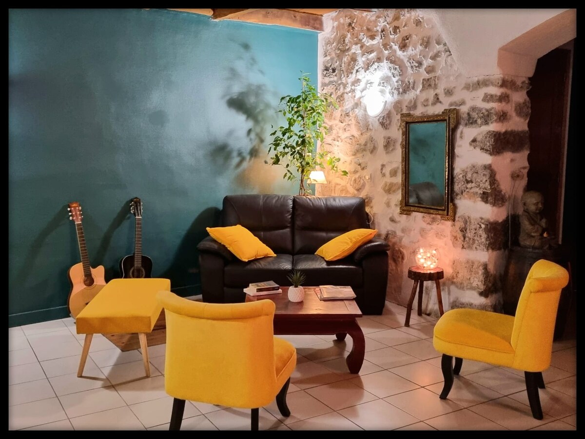 Casa mea se află în mediul rural, nu departe de un sat fermecător, aproape de Grenoble și de drumurile principale. Te poți bucura de calmul grădinii pentru relaxare și cada cu hidromasaj . Lacurile din apropiere și multe obiective culturale îți vor permite să ai o ședere plăcută și să faci drumeții frumoase în diferitele lanțuri muntoase. Ofer mese de seară (rezervare) De asemenea, ofer pentru masajele tale de wellness de relaxare,introducere în yoga