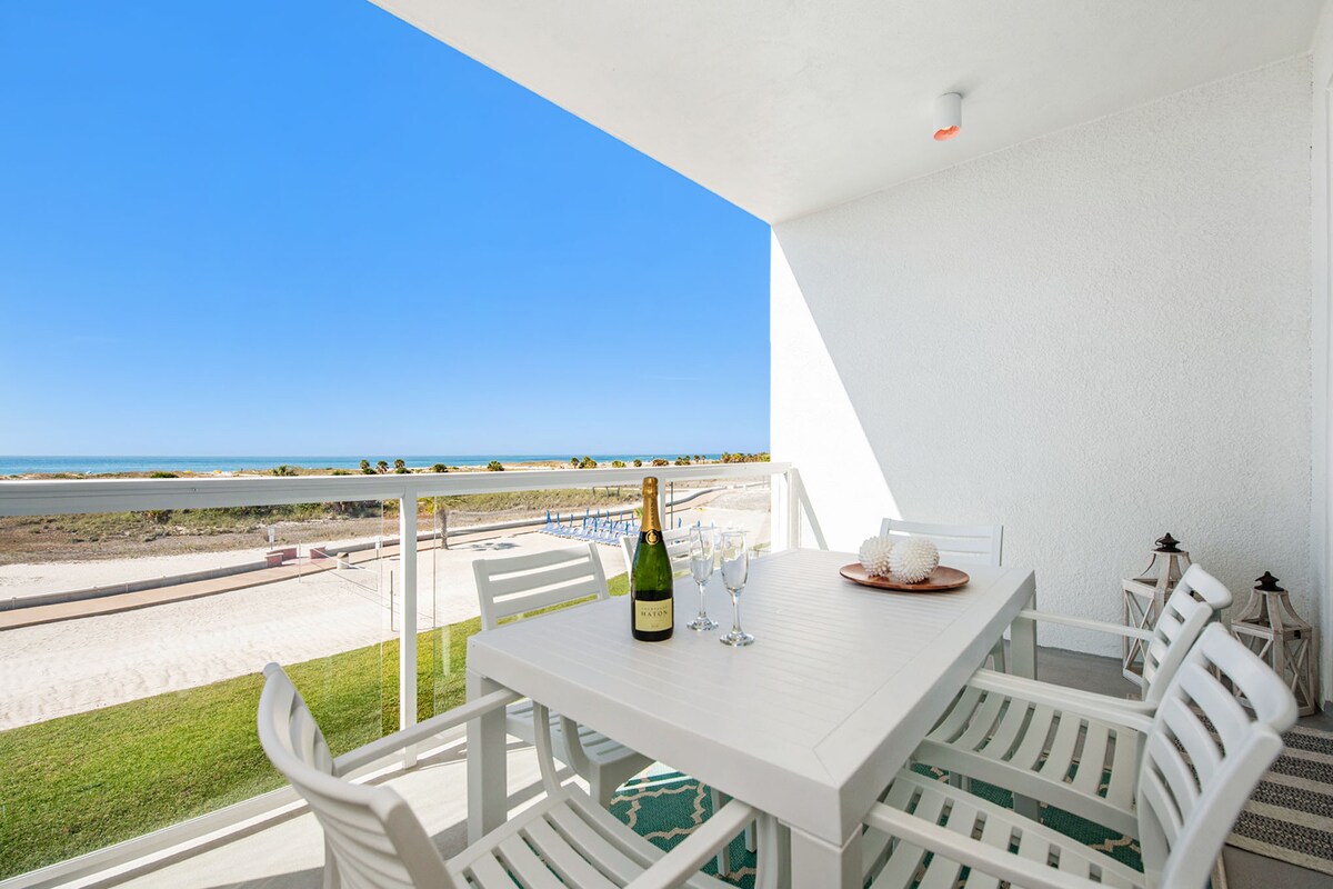 Fii printre primii care experimentează acest nou complex de apartamente. 992 de metri pătrați de lux pe plajă, cu facilități complete de stațiune. Aceste unități de colț de la etajul superior au vedere superbă la ocean, iar fiecare cameră are o fereastră cu vedere la plajă. Cu 2 dormitoare și 2 băi și o canapea extensibilă în living, aceste unități pot găzdui confortabil 6 persoane. După ce ajungi în zona de living deschisă, îți vei accesa balconul privat prin uși glisante retractabile care lasă aerul oceanului să intre.