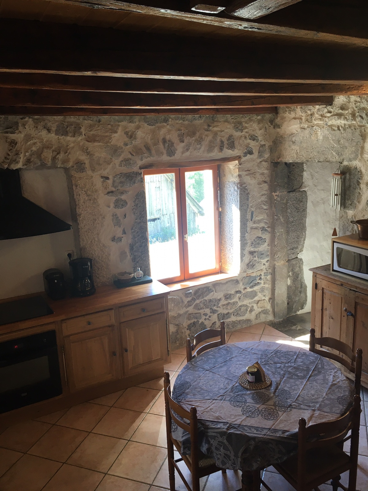 Dans le massif de la Chartreuse, environnement calme et préservé, gîte (de Fontanieu) dans une maison traditionnelle. Au r.d.c.: cuisine, séjour avec canapé convert et poêle. Au 1er ét. : pièce tv avec canapé convert. et lecteur dvd, Ch.1 (1 lit 2 pers.), salle de bain avec baignoire, WC séparé. Au 2ème ét. : Ch.2 (2 lits 1 pers.), Ch.3 (2 lits 1 pers.). Surcapacité (+2). Chauffage bois & élec. Terrasse/Jardin vue sur les montagnes et BBQ. Prévoir vos draps & serviettes (option sinon à 10€/lit)