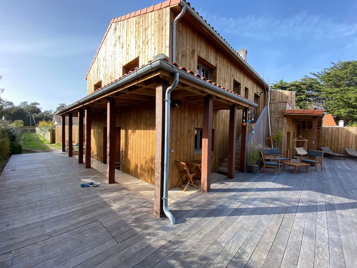 Apartament duplex pentru 4 persoane 55m2, într-o reședință frumoasă liniștită, parcare auto/bicicletă. 150 m de mare, 500 m de plaja însorită, 5'cu bicicleta din sat, magazine, 10' cu bicicleta Gatseau Beach, 20’ de Grande Plage... Trasee de biciclete pentru a vizita insula. Intrare, bucătărie deschisă utilată (frigider, cuptor cu microunde, cuptor, aragaz, mașină de spălat rufe, cafetieră), living pe o terasă umbrită. Mezanin 20m2 cu zonă TV, birou, zonă de dormit cu pat dublu Dormitor cu pat dublu. Băi separate/wc. Wi-Fi/internet prin fibră optică.