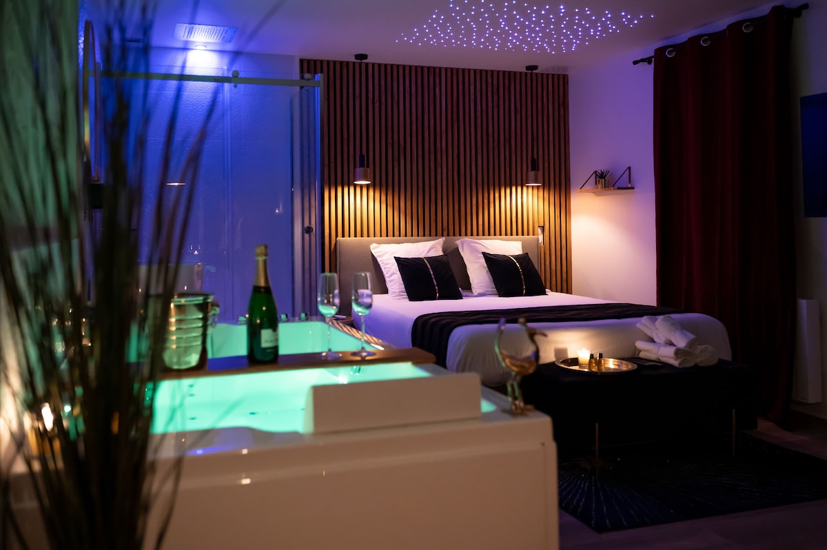 Bien plus qu’un logement, ce lieu a été imaginé comme un véritable cocon romantique. ✨ Lumières tamisées, ambiance chaleureuse, attentions délicates à votre arrivée… Tout est pensé pour créer une atmosphère douce et intime. Après une journée d’évasion, profitez de votre jacuzzi privatif autant de fois que vous le souhaitez pour un moment de détente absolue, en toute tranquillité.🌷