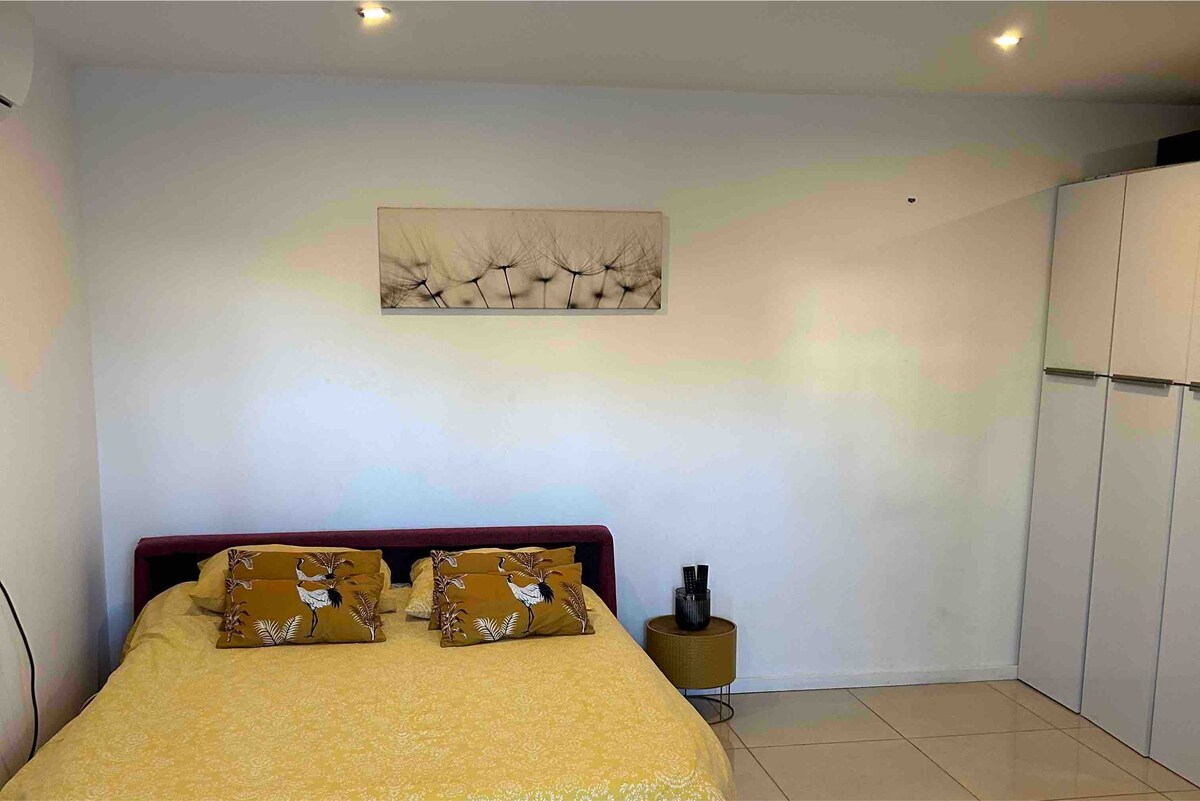 Bine ai venit în studioul „Le NID”, un cocon confortabil, modern și cu aer condiționat, situat la 4 minute de aeroport și la 9 minute de stația TGV. Bucură-te de o locație ideală aproape de magazine, sală de gimnastică și plaja Jaï (5 minute). Bucătărie complet utilată, pat confortabil, TV, Wi-Fi, check-in independent și parcare gratuită. Descoperă Côte Bleue, golfurile și toată dulceața sudului pentru o ședere relaxantă sau profesională