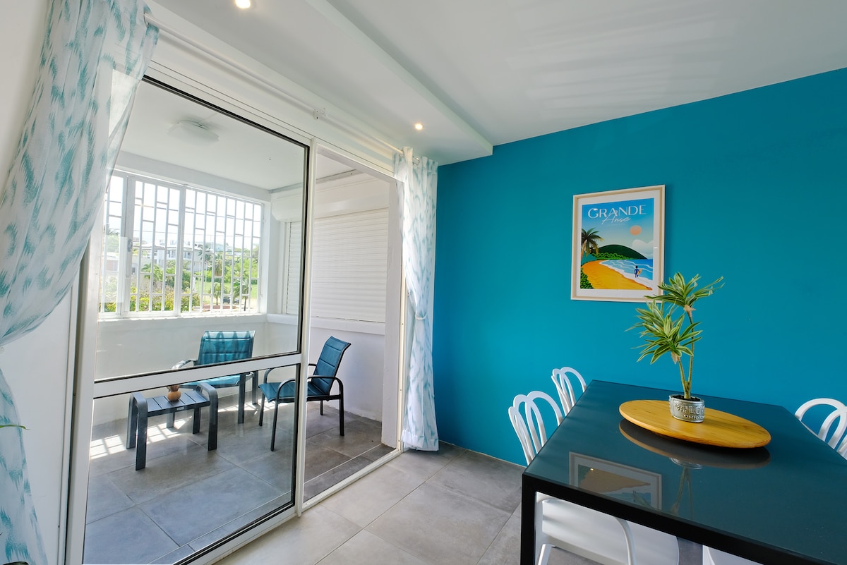 Vue mer panoramique sur la mer des Caraïbes, studio "Coup de cœur Airbnb" – idéal en solo ou à deux ! À seulement 4 minutes à pied de la plage privée de l’Anse des Rochers, ce studio climatisé de 25 m² avec terrasse extérieure vous offre une vue mer à 180°, idéale pour se détendre, télétravailler ou partager un moment à deux.