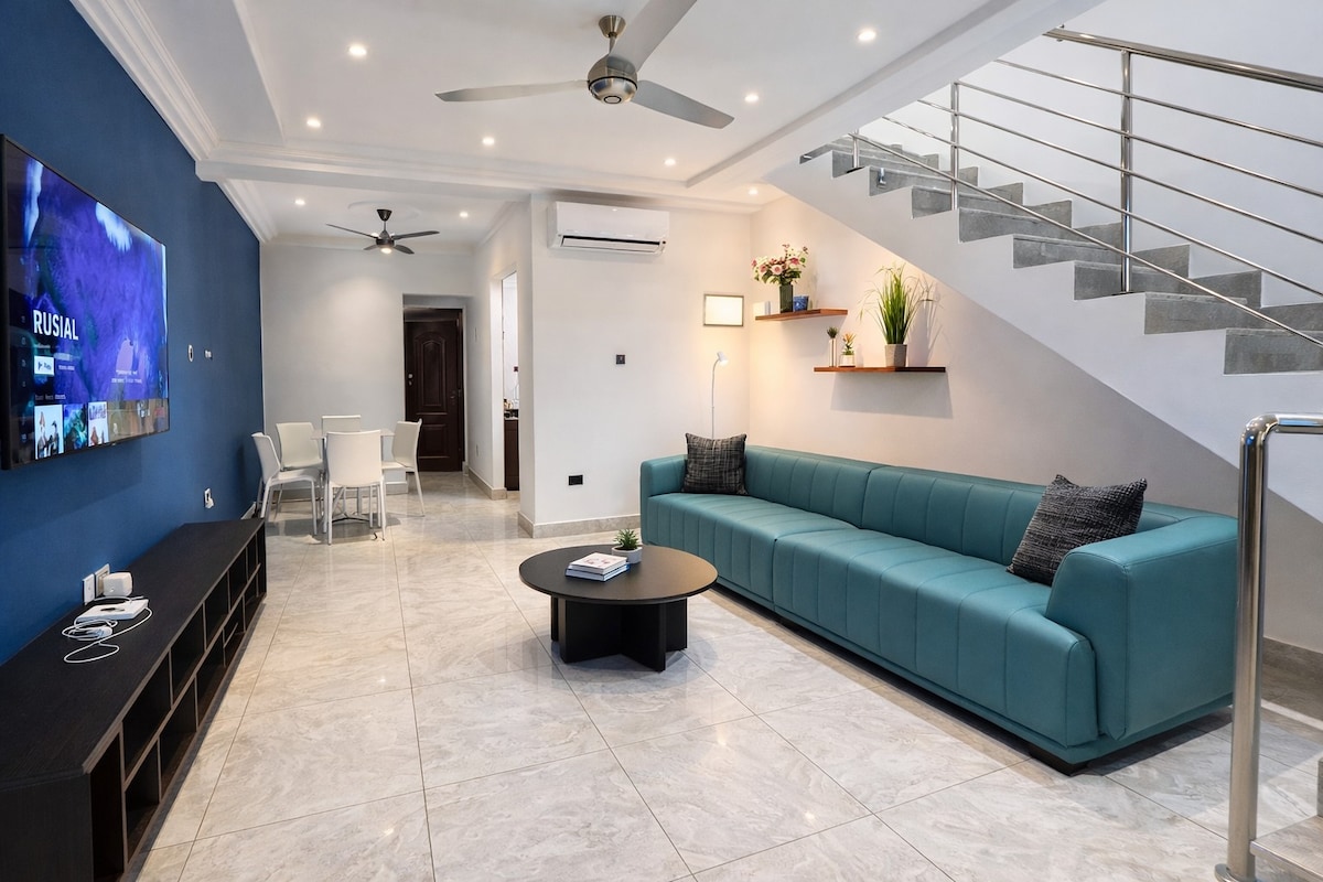 Bine ai venit în casa ta liniștită departe de casă — un refugiu elegant și sigur cu 2 dormitoare, conceput pentru confort, relaxare și viață fără efort. Trezește-te într-un cartier închis și liniștit, bucură-te de o baie răcoritoare în piscină, lucrează fără probleme cu Wi-Fi rapid și alimentare fiabilă non-stop și relaxează-te în spații frumos concepute pentru odihnă și conectare. Indiferent dacă vizitezi în interes de afaceri, în vacanță sau pentru o ședere prelungită, acesta este locul perfect pentru a te relaxa, reîncărca și simți complet ca acasă.