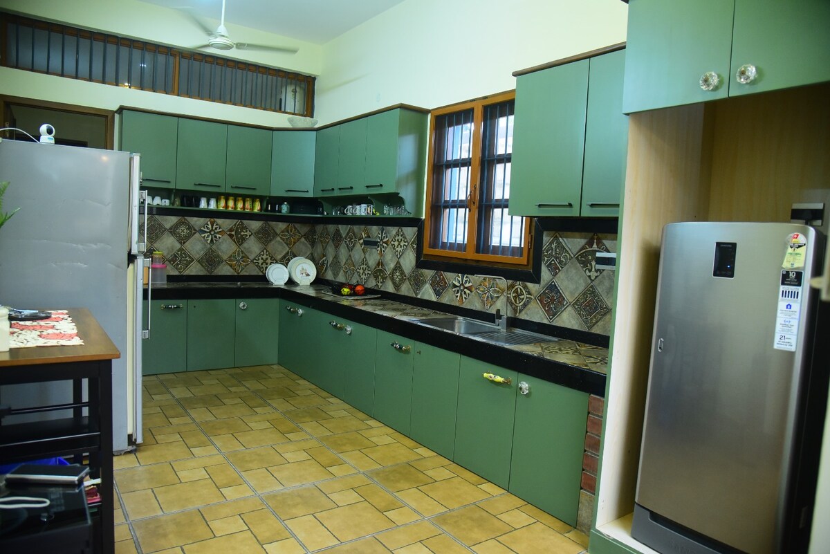 Chiar lângă drumul ECR, pe partea plajei, situat într-un cartier închis și sigur, viața pare ușoară - desculț în iarbă, aerul răcoros de dimineață și plaja la 3 minute de mers pe jos. Vila și grădina sunt, de asemenea, destul de spațioase, cu 3 băi și suficient spațiu pentru ca 7 adulți să doarmă confortabil. Casa are cărți de citit, jocuri de jucat și o piscină pentru copii. Copiilor le place spațiul, iar călătorii singuri se simt în siguranță. Există, de asemenea, o mulțime de lucruri de făcut în apropiere, cu situri de patrimoniu și multe restaurante la îndemână.