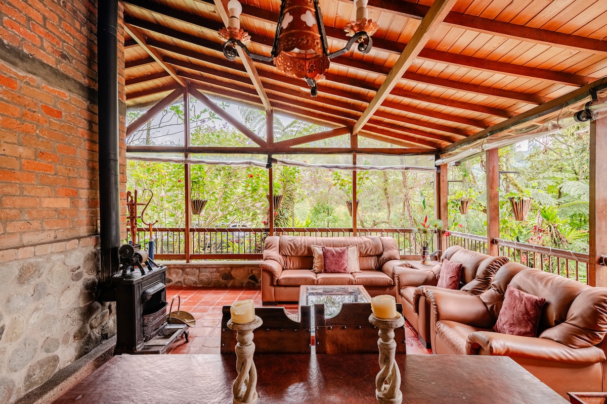 O proprietate cu vedere la munte, înconjurată de natură și animale, cu o atmosferă de pace și liniște ideală pentru odihnă, liniște și meditație. Situat într-un punct intermediar al regiunii cafelei, la 35 de minute de Salento și la 30 de minute de Armenia sau Pereira, cu acces facil la doar 3 km de autostrada cafelei. Are aer condiționat cald sau rece, în funcție de sezon, cu o capacitate de 6 persoane. Are 4 dormitoare, dintre care trei au un pat dublu.