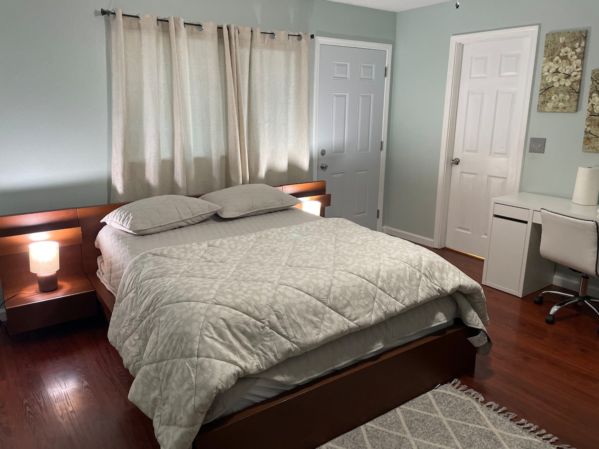 Bucură-te de o experiență elegantă în această zonă centrală situată, căutată în Modesto! La câteva minute distanță de tot și la câțiva pași de multe magazine. Vei avea propria intrare privată, chicinetă (fără ARAGAZ/CUPTOR), baie și dormitor, toate pentru tine! Vă rugăm să rețineți că această unitate este atașată la casa principală a familiei mele. Avem doi câini și vecinii mei, deci nivelul de zgomot nu este întotdeauna liniștit. Nu ezita să ne contactezi. Vreau ca șederea ta să fie cât mai confortabilă și mai ușoară posibil. *