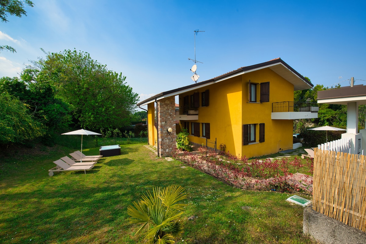 Fully renovated apartment in Desenzano del Garda with private garden, jacuzzi, and sauna for exclusive use. Terrace and private garage included. Accommodates up to 4 guests. Located in a villa just a few steps from the lake: simply cross the road and a small park to reach it. Ideal for couples, families, or small groups seeking relaxation and privacy.