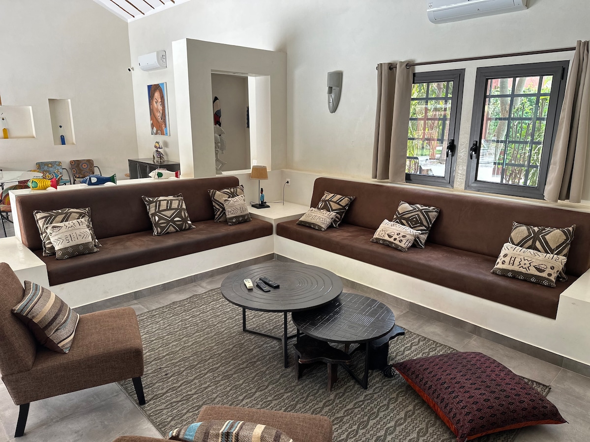 Vilă frumoasă de lux, 8 persoane, piscină privată, grădină tropicală cu vedere la lagună, reședință securizată H24. Vila este foarte bine situată la 500 de metri de ocean, la 2 km de sat/magazine în Nianing. Oameni la dispoziția ta pentru odihnă totală: Amy, menajeră/bucătăreasă pe cheltuiala ta (8 până la 10 euro/zi). Însoțitorul piscinei/ 2 dimineața 6 zile pe săptămână (pe cont propriu). Taxi trimis la aeroport (se plătește) la cerere. Aparat la programare. Wi-Fi cu fibră optică/TV gratuit/ electricitate în plus. Consultă reglementările interne.