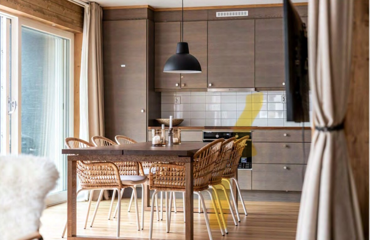 Vecin cu Olarsgården și la câteva sute de metri de Sälfjällstorget trăiești liniștit și liniștit în această casă semi-detașată. Etajul superior are tavane înalte și o bucătărie combinată cu livingul. Etajul inferior conține două dormitoare, unul cu un pat dublu de 160 cm și al doilea dormitor două paturi suprapuse de 90 cm fiecare cu spațiu de depozitare sub și într-un dulap. În hol există un dulap de uscare, iar în toaleta de alături există o mașină de spălat și un uscător automat de rufe, precum și o saună spațioasă.