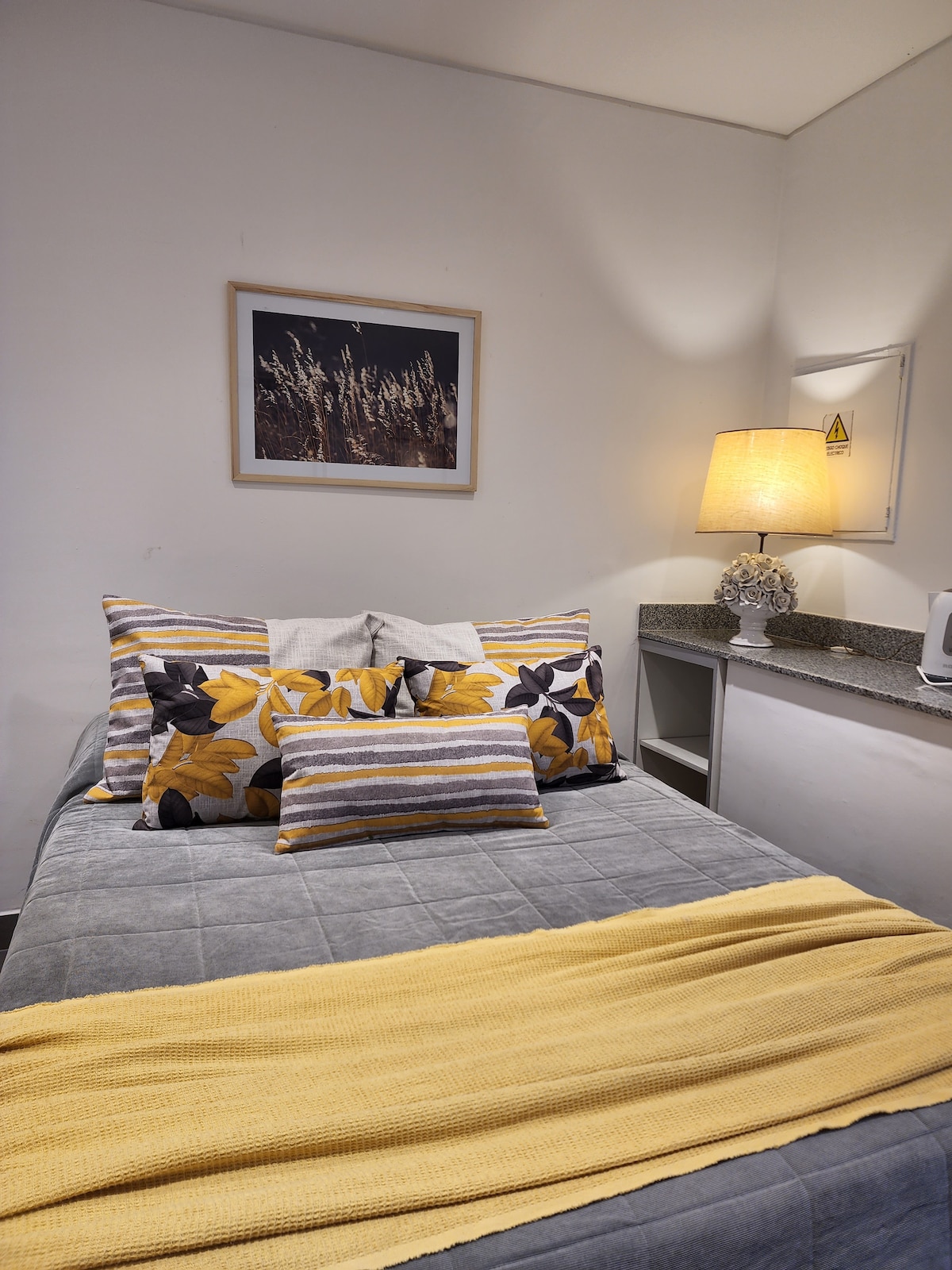Cameră single excelentă la ultimul etaj al clădirii DFC, cu vedere excelentă la dealuri și la orașul Salta, are bucătărie completă, baie completă, aer condiționat, cablu TV și sistem inteligent, WiFi, un pat king-size sau două paturi de o persoană, lenjerie de pat, prosoape. Clădirea are o piscină în aer liber, o sală de gimnastică și un quincho cu grătar (acesta din urmă la cerere și contra cost).