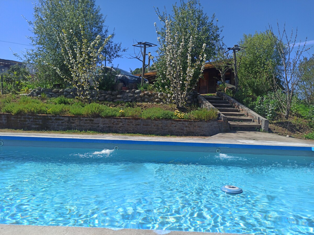 Cabană frumoasă, un colț confortabil pentru a te deconecta și odihni. Situat la numai 400 de metri de Salto del Laja, ceea ce îți permite să mergi pe jos dacă dorești, aproape de supermarketuri și restaurante. Parcare lângă cabană. Avem zone verzi, un pârâu pentru îmbăiat, înconjurat de copaci mari care oferă umbră răcoritoare, precum și o piscină frumoasă. Cabana are tinaja privată, dacă dorești să o utilizezi are o valoare separată, vezi.