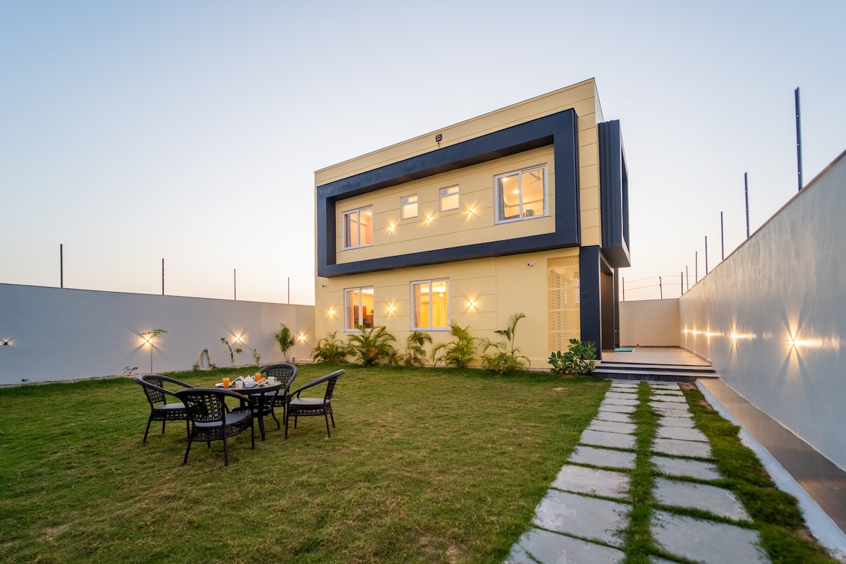 Evadează în liniște: La Retreat este o vilă rafinată cu piscină, cu 3 dormitoare, în Bindayaka, lângă Vaishali Nagar, concepută pentru oaspeții care doresc o evadare privată, în stil stațiune, fără a părăsi limitele orașului. Exteriorul rustic, interiorul cald și spațiile de locuit generoase, atât în interior, cât și în exterior, creează un cadru relaxat, dar luxos, pentru escapade în familie, sărbători și weekend-uri lungi, la doar câteva minute de oraș. Bucură-te de intimitate completă pe durata șederii.