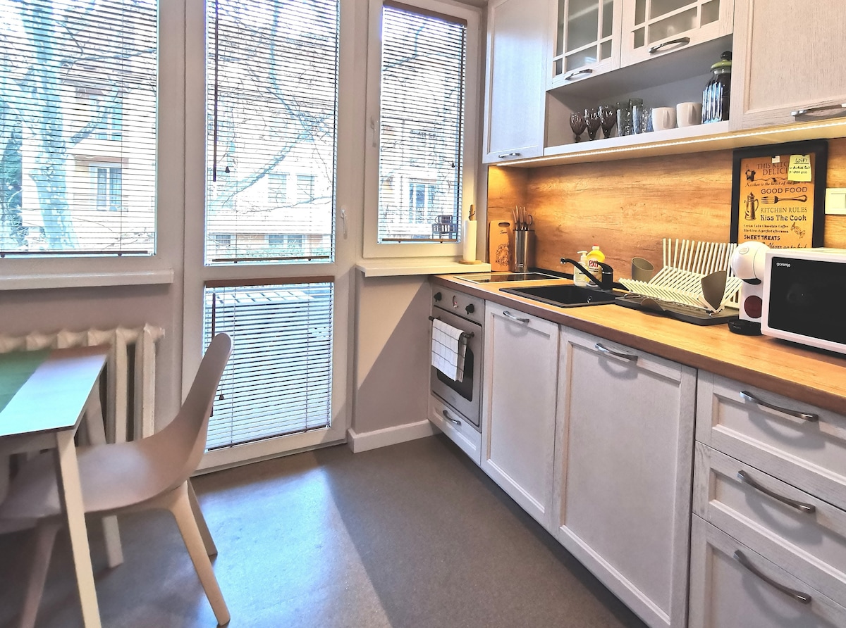 Apartament nou-nouț situat într-un cartier central. ★„Gazdă excelentă, notă personală, decorată minunat și extrem de bine echipată.” ☛ Parcare GRATUITĂ în apropiere ☛ Check-in/check-out simplu Stații de☛ metrou - 5 min, călătorie în centru 10-15 min, până la aeroport 20-25 min Parc ☛ verde - 5 min de mers pe jos ☛ Brutărie - intrarea în clădire ☛ Supermarket - 5 minute ☛ Bar și cină - în fața imobilului ☛ Cumpără - lângă clădire/magazinul Nonstop - vizavi. Trimite-mi un mesaj, mi-ar plăcea să iau legătura cu mine!