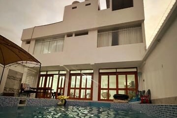 Descoperă casa noastră cu piscină, ideală pentru familii și grupuri de prieteni. Bucătărie echipată, sufragerie cu vedere la piscină, zonă de grătar, trei dormitoare cu baie în fiecare cameră și o baie socială, garaj, apă potabilă și securitate. Poziție convenabilă lângă plajă și Camaná. Rezervă acum!