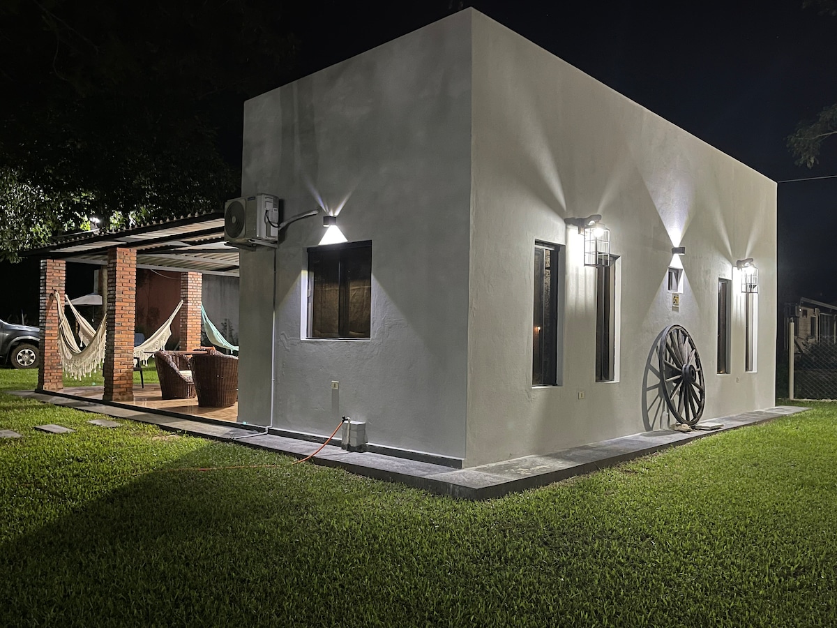 Disfruta de la piscina con cascada, relax en el hidromasaje, las vistas del atardecer/amanecer en la terraza o el mirador. Wifi 220 Mbps Churrasquera y horno tatakuá, para preparar carnes/pescados/pizza/comidas típicas y disfrutar en la mesa de madera/bajo los árboles. Aire acondicionado en los 3 dormitorios y en la cocina/sala 2. Un tanque de 1000 litros para casos de corte de agua. Ayuda para excursiones. El lago Ypacaraí está a pocos km.