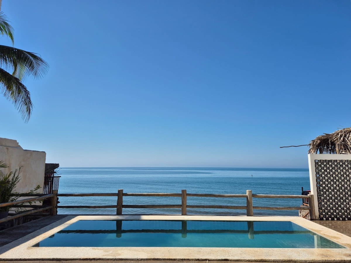 Fă o pauză și relaxează-te în această oază de liniște. Bucură-te de întreaga suită cu 2 dormitoare/2 băi, cu balcoane uriașe și un spațiu de locuit, toate cu vedere uimitoare la plajă. Playa hermosa este situată în orașul istoric San Blas, lângă Playa el Borrego. Este o parte foarte virgină a plajei de care te poți bucura în majoritatea zilelor. Dacă dorești mai multă ambianță, există ramadas la mică distanță de mers pe jos, unde te poți bucura de fructele de mare delicioase sau de o nucă de cocos pe plajă.