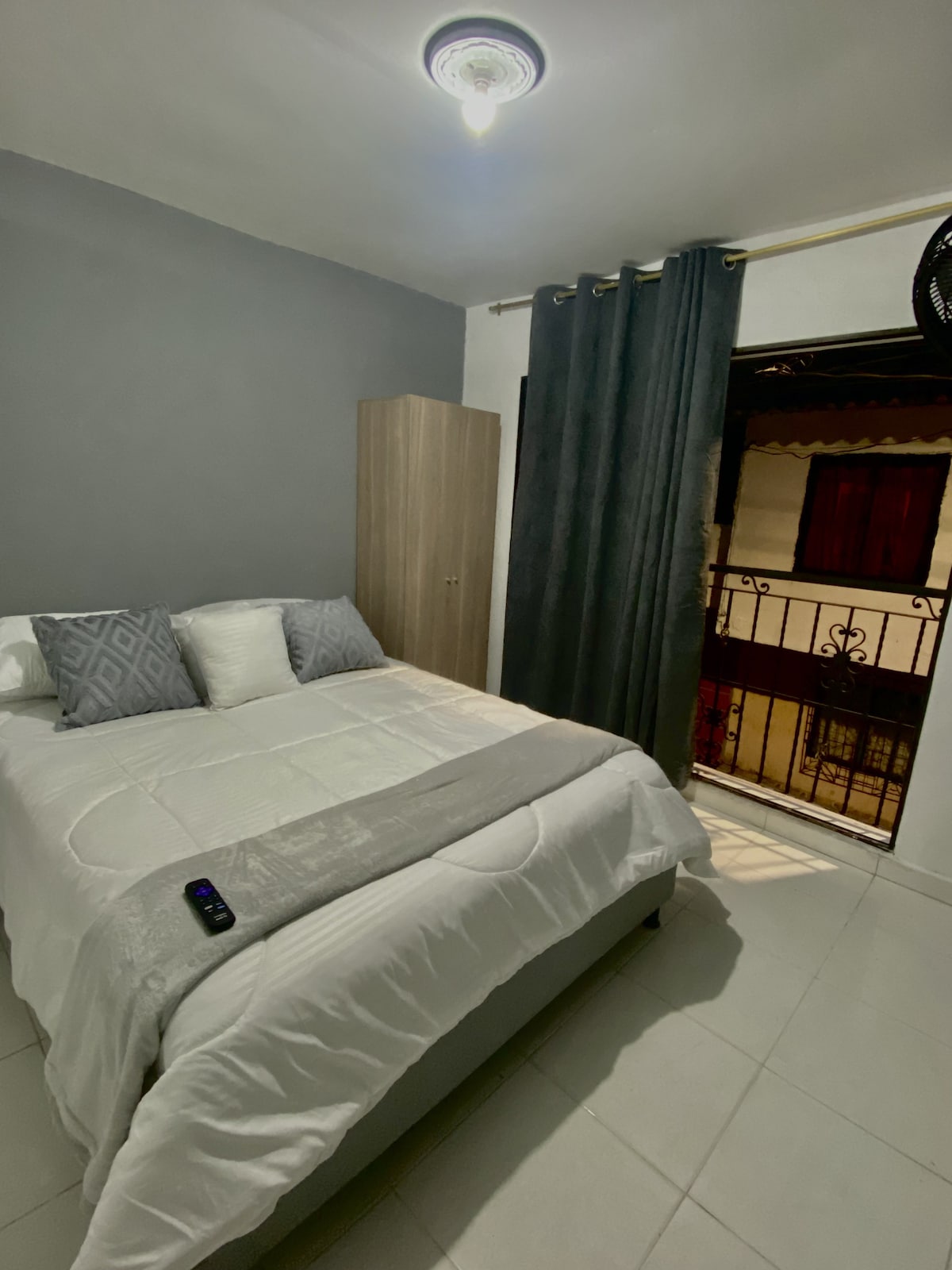 Apartament cu poliță de asigurare civilă inclusă pentru siguranța ta, ideal pentru familii sau grupuri de prieteni. Situat aproape de parcul satului la etajul al treilea pentru 6 persoane cu 3 camere, 2 cu pat dublu și altul cu 2 paturi de o persoană, dotate cu ventilatoare portabile. Casa are Wi-Fi, zonă de spălare, două băi, living mare cu TV, sufragerie, bucătărie utilată și balcon cu vedere la biserică. Apartamentul este aproape de supermarketuri, agenții de turism și râuri precum râul Guatapé.
