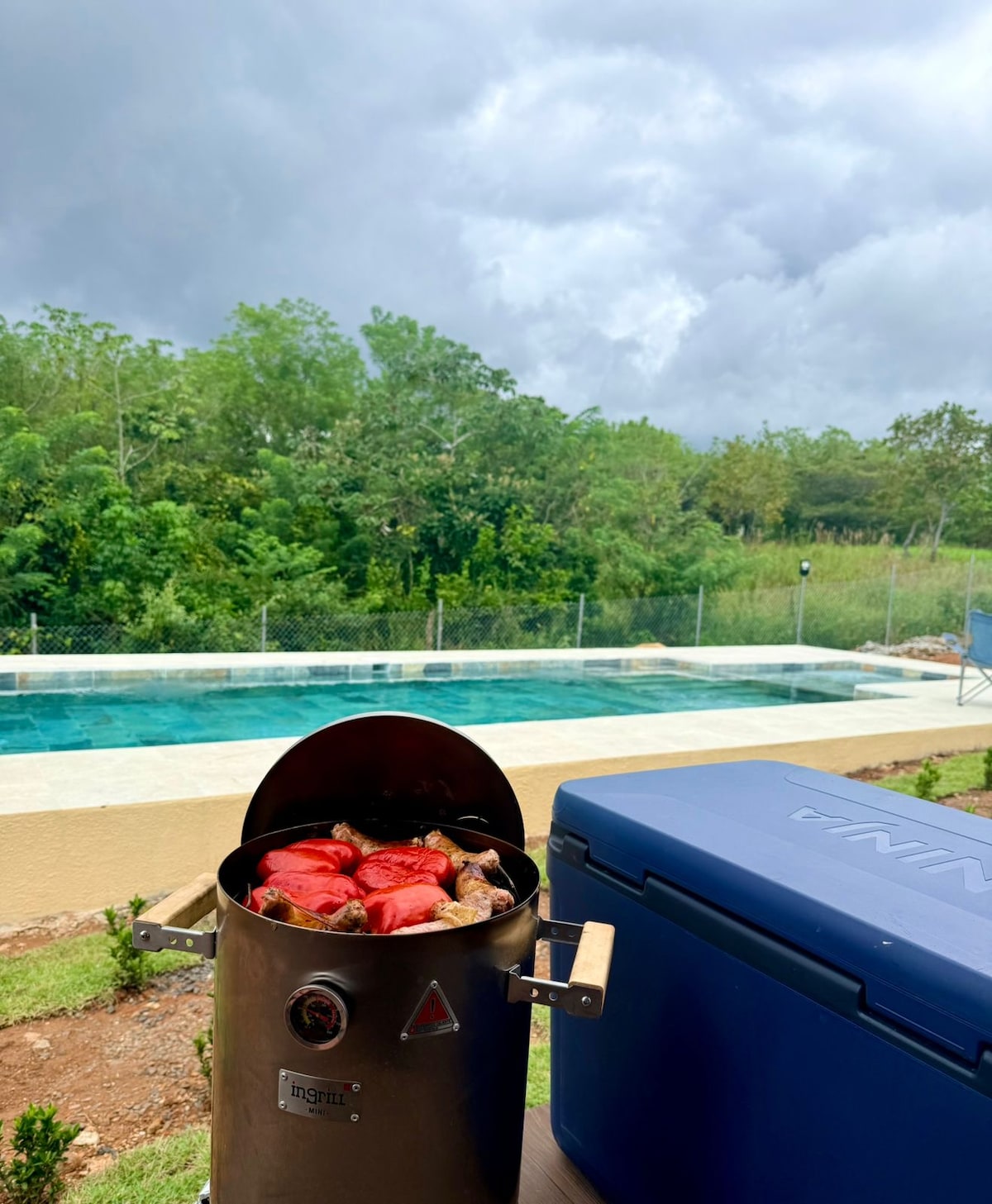 Escápate al paraíso familiar en San Carlos. Disfruta de nuestras acogedoras cabañas rodeadas de naturaleza, con una hermosa piscina y una linda vista Tiene una cabaña de uso familiar o la alquilada aveces La piscina es totalmente compartida No hay tiendas cercas debe traer todo lo que necesita También traer carbón No se permite entrada de personas sin reserva Su boscina si escucharan música Su comida Traer off