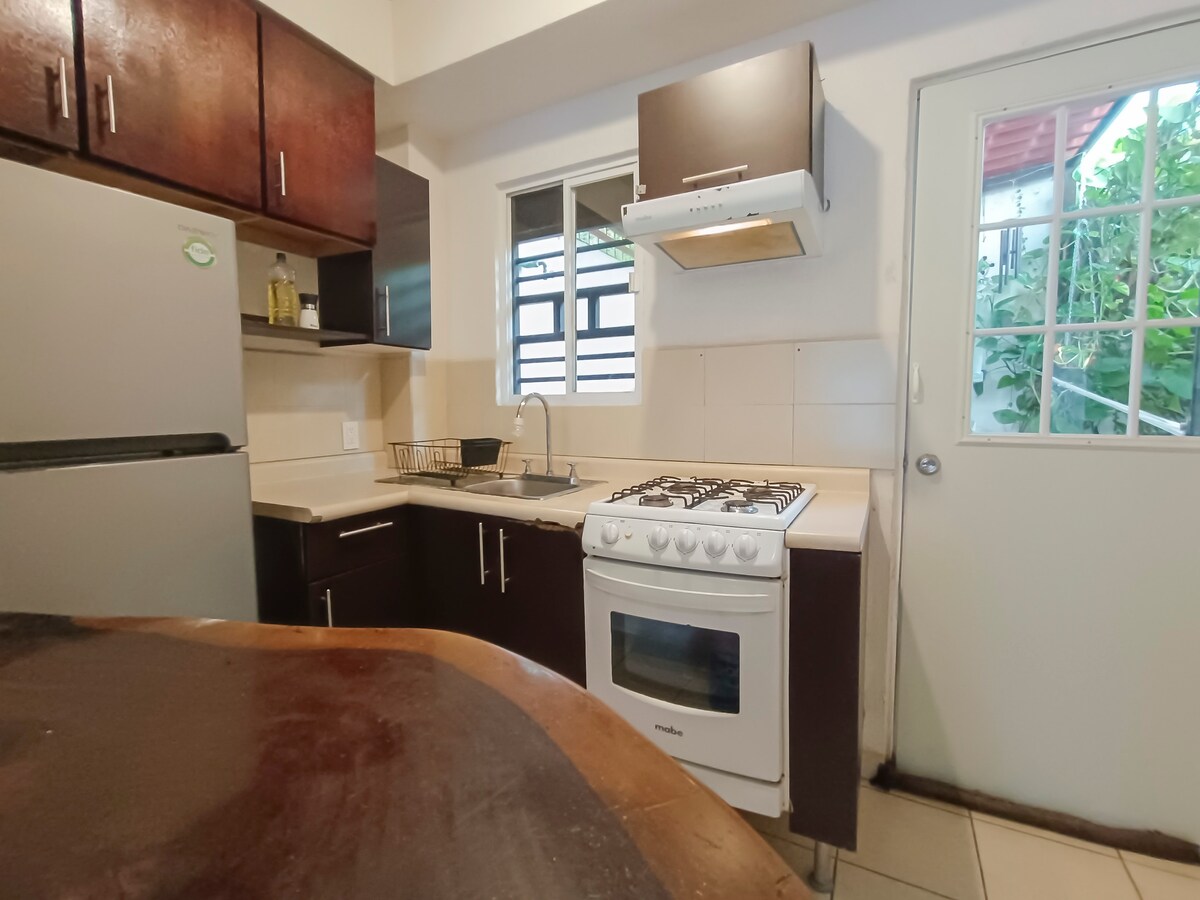 Apartamentul Rosina este un apartament cu 1 dormitor proaspăt actualizat, situat la etajul 4 din 3.14. Locuiesc în Nuevo Vallarta, revopsit în iunie 2025. Bucură-te de vedere la munte și de un balcon confortabil cu grătar și vedere la răsărit. Doarme 2 persoane cu un pat matrimonial, 1 baie cu duș, bucătărie complet utilată, stație de cafea, internet de mare viteză, aer condiționat nou excelent și un spațiu de lucru dedicat. Living spațios cu canapea mare. Mergi pe jos până la plajă în 8 minute sau bucură-te de cafenele, restaurante și magazine chiar la parter. Liniștit și bine situat.