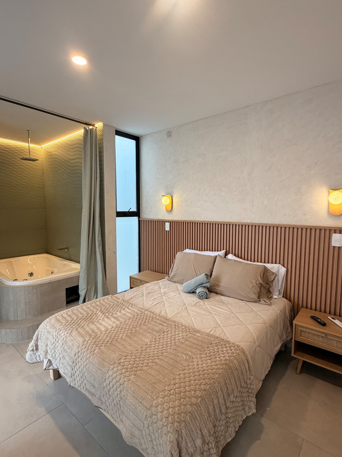 Casa Piedra y Altura es una residencia de autor donde el diseño industrial se fusiona con el confort ✨ Su imponente doble altura, líneas limpias y materiales cuidadosamente seleccionados crean una atmósfera contemporánea y luminosa. A solo 5 minutos del Centro y de la Feria Nacional de San Marcos, ofrece ubicación estratégica y privacidad. Disfruta su jacuzzi privado climatizado ♨️ y vive una estancia elegante, exclusiva y verdaderamente memorable en Aguascalientes.