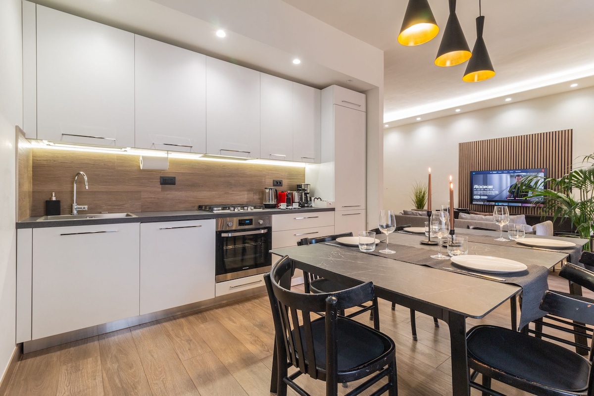 Spacious and elegant apartment (130 sq m), beautifully furnished with a nod to tradition. Generous living areas provide the perfect setting to unwind, recharge, or enjoy quality time with friends. Ideal for a couple, two pairs of friends, or a family of four. Bedrooms are equipped with air conditioning. However, if you're passionate about combating climate change, you can opt for the ceiling and floor fans available in every room. They ensure a refreshing stay, even on the warmest days.