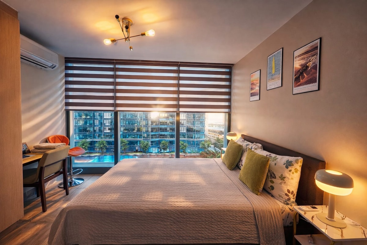 Evadează într-o suită de la etajul înalt, cu vedere uluitoare la orizontul BGC, sunet surround JBL cinematografic și un televizor inteligent 4K complet de 55 inchi cu iluminare LED. Bucură-te de peisajul cu binocluri de înaltă calitate, apoi scufundă-te în ultra-configuratul Emma® Cloud-Bed pentru un somn perfect de noapte. Departe de zgomotul orașului, dar aproape de toate, bucură-te de Wi-Fi rapid, Netflix, Disney+ și multe altele! Un spațiu cu adevărat complet echipat pentru o experiență de ședere fără probleme și de neuitat cu Cinema 27!