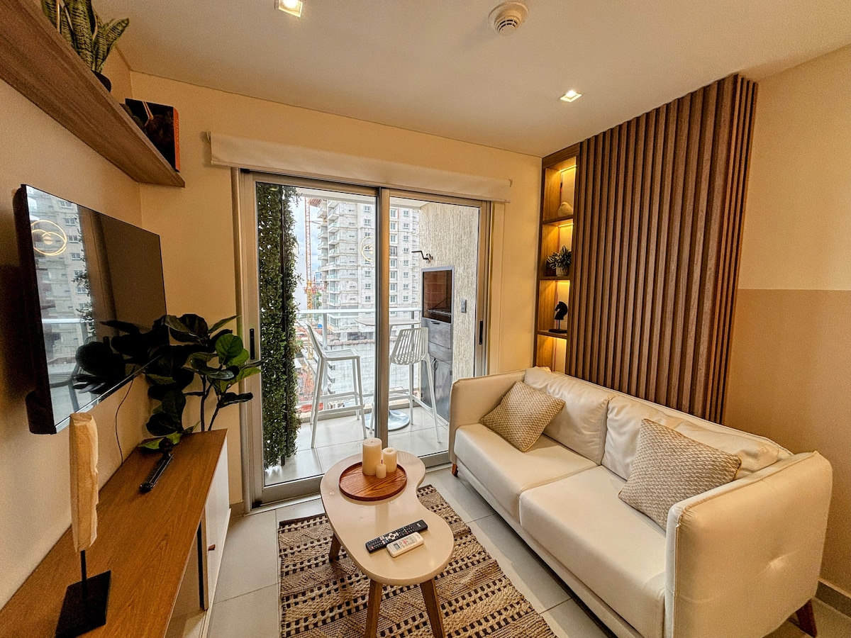 42m² cu balcon privat * 3 minute de mers pe jos până la cafenele, restaurante și centrul comercial * 1 dormitor + canapea extensibilă * Spațiu de lucru dedicat * 1 televizor inteligent * Cafetieră Nespresso * Mașină de spălat în unitate * Friteuză pneumatică * portar non-stop *Această unitate nu are parcare în interiorul clădirii. Dotări * Piscină * 2 sală de grătar / evenimente (1 în aer liber și 1 aer condiționat) * Sală de fitness * Cinematograf * Spațiu de lucru /zonă de coworking Adaugă anunțul meu în lista ta de dorințe dând clic pe butonul ❤ din colțul din dreapta sus.